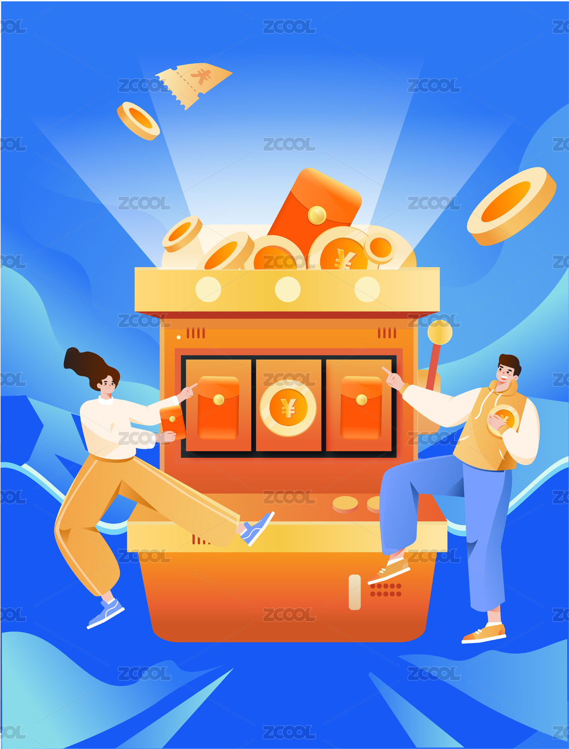 卡通抽獎(jiǎng)轉(zhuǎn)盤互聯(lián)網(wǎng)金融收益福袋理財(cái)插畫
