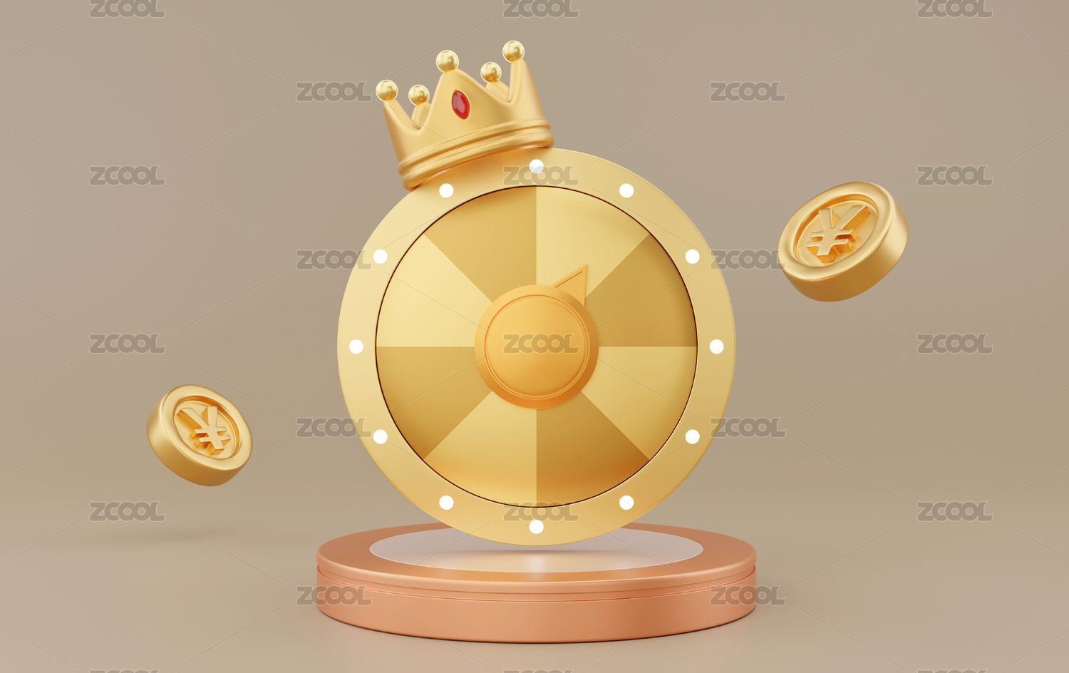 帶皇冠的3D立體卡通游戲抽獎(jiǎng)轉(zhuǎn)盤和金幣