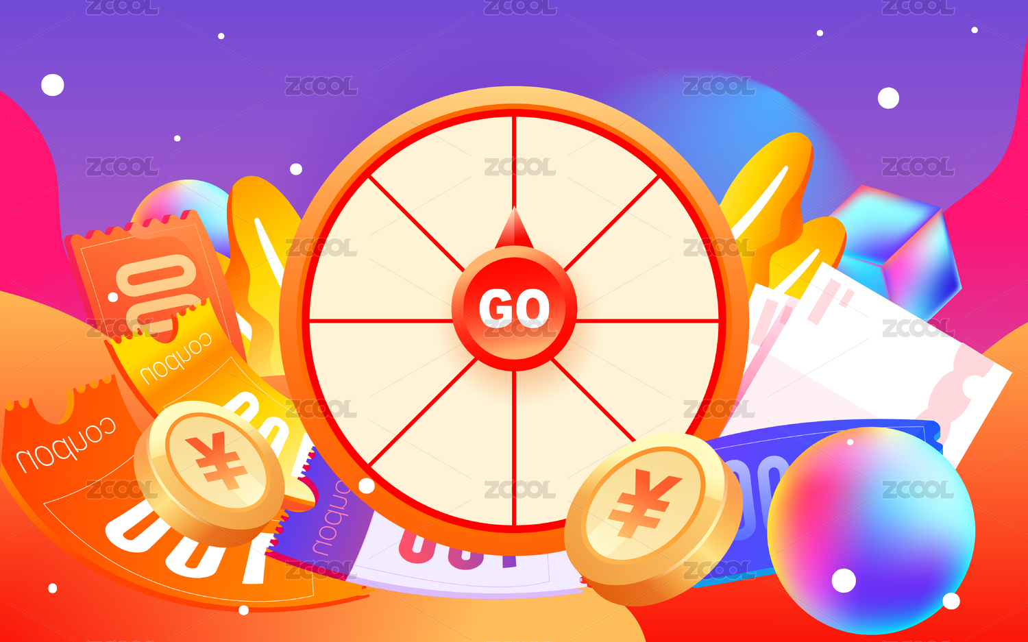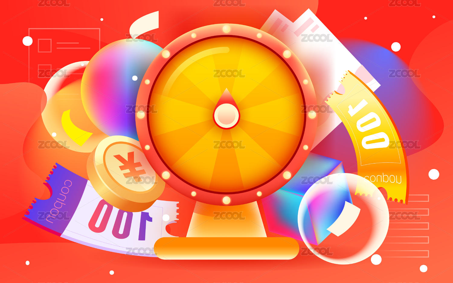 3D立體卡通游戲抽獎(jiǎng)轉(zhuǎn)盤和優(yōu)惠券