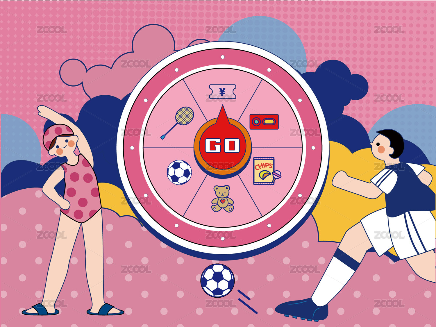 藍(lán)色調(diào)轉(zhuǎn)盤抽獎(jiǎng)插畫