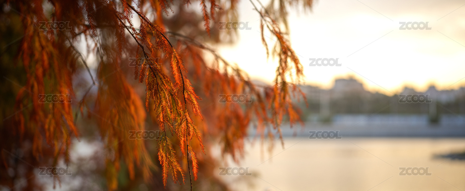 杭州曲院風(fēng)荷水邊紅楓枝椏橫生的秋日景致