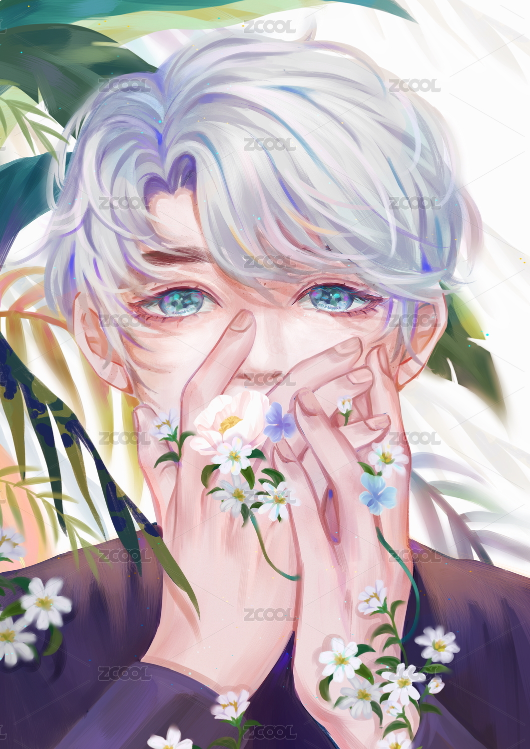 一個(gè)被悲傷籠罩的捂臉男孩子矢量插畫
