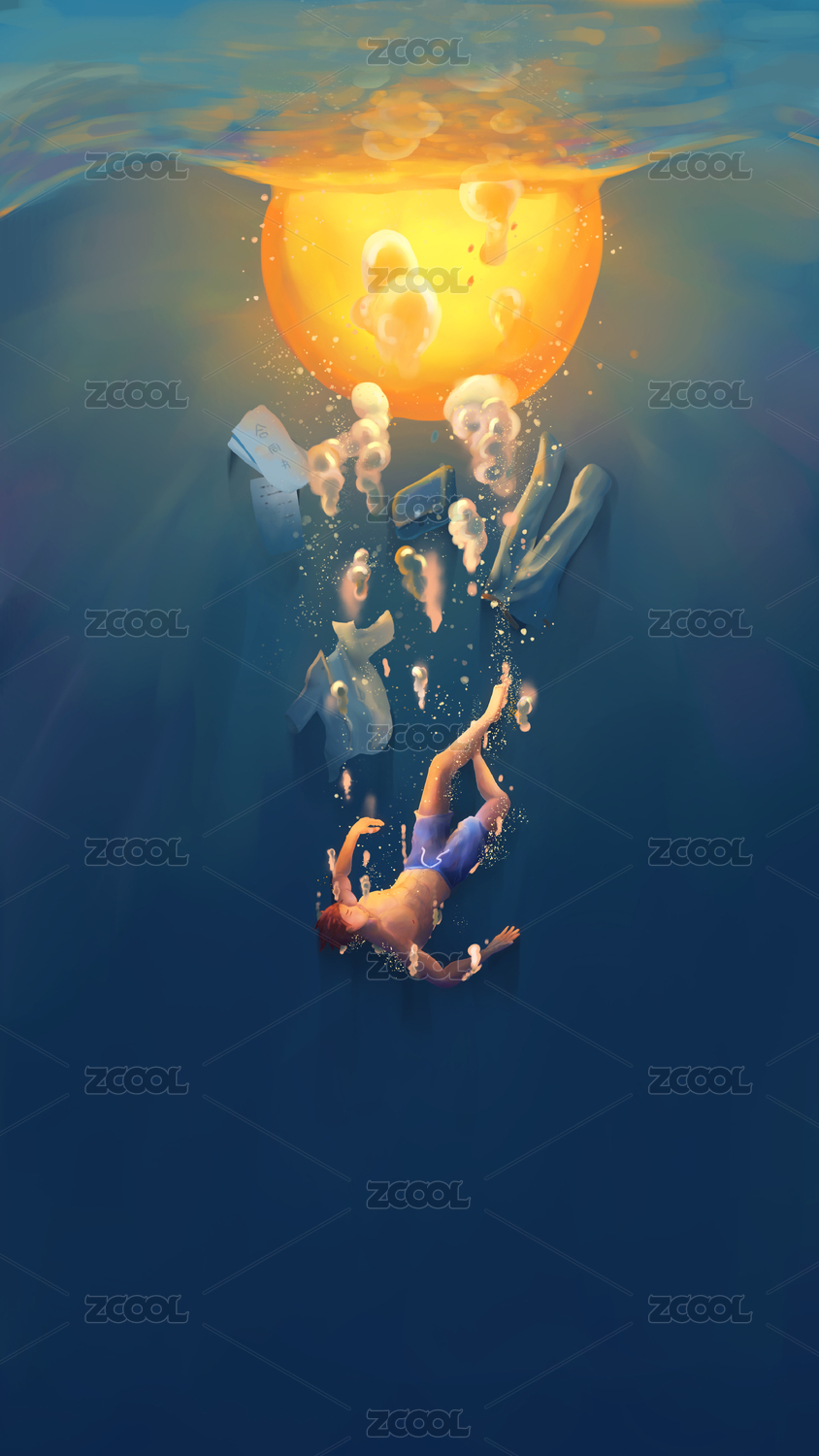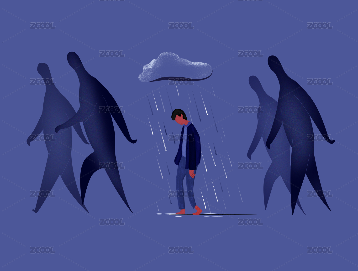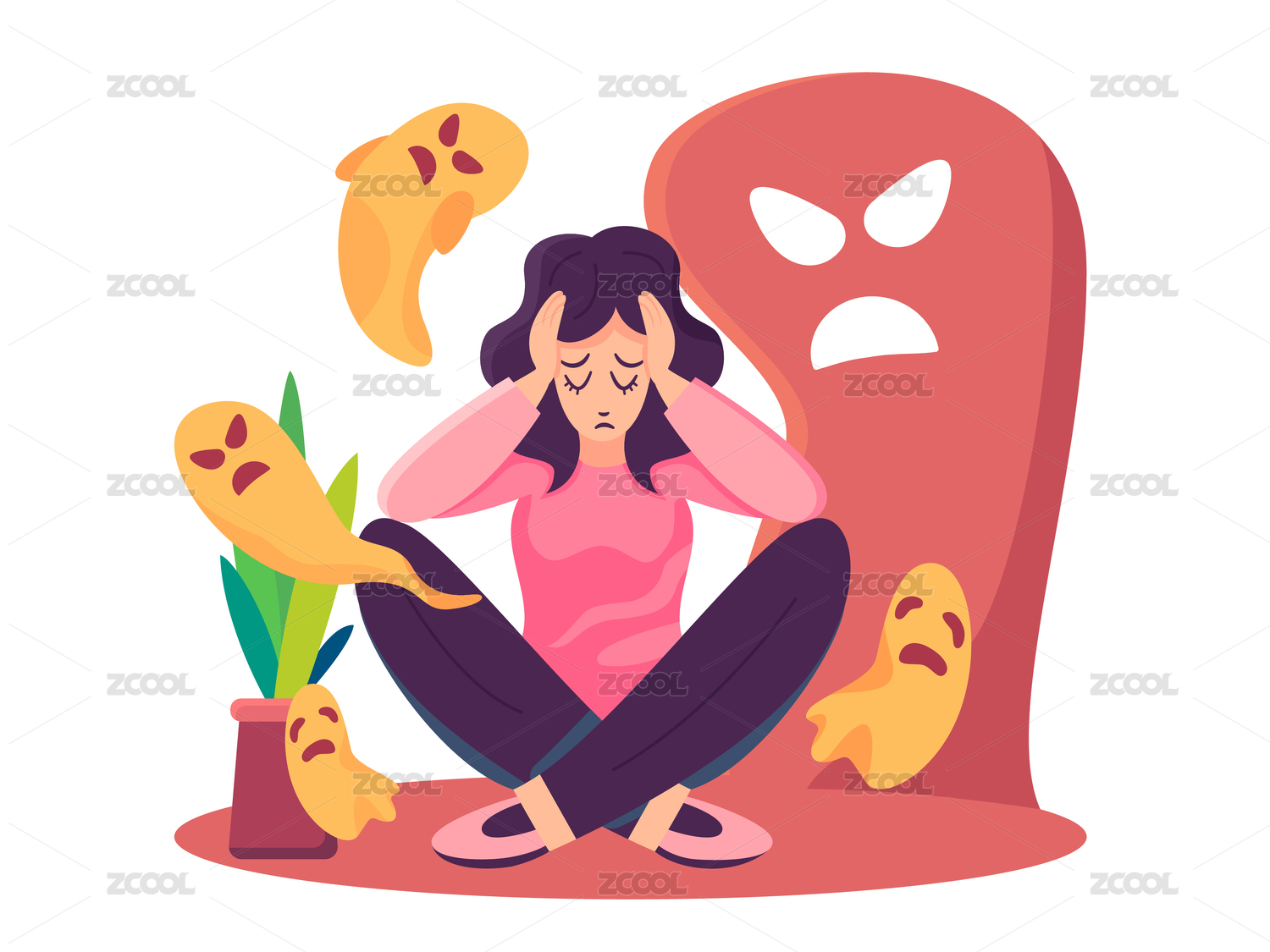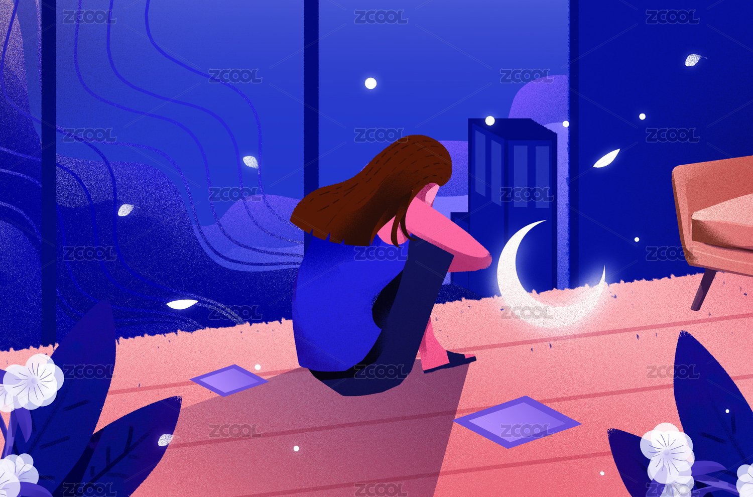 卡通手繪世界自閉日女子孤獨(dú)抱膝坐插畫