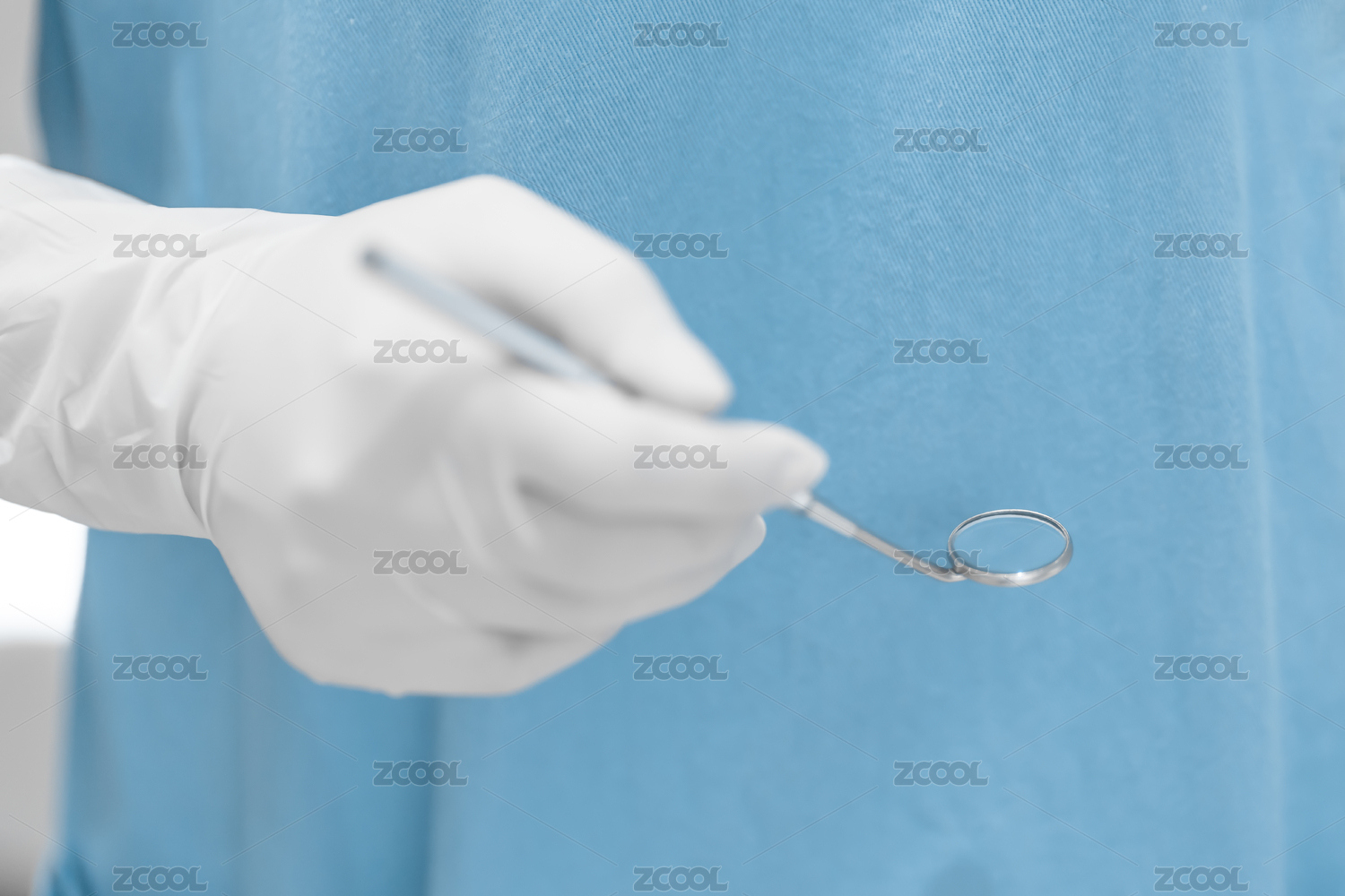 牙醫(yī)帶白手套拿著口鏡