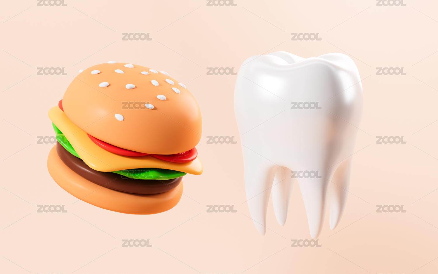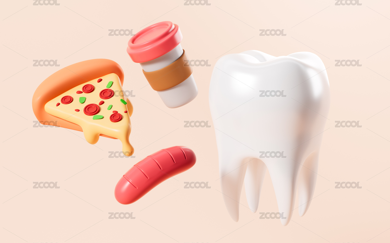 牙齒咀嚼食物口腔衛(wèi)生概念3D渲染