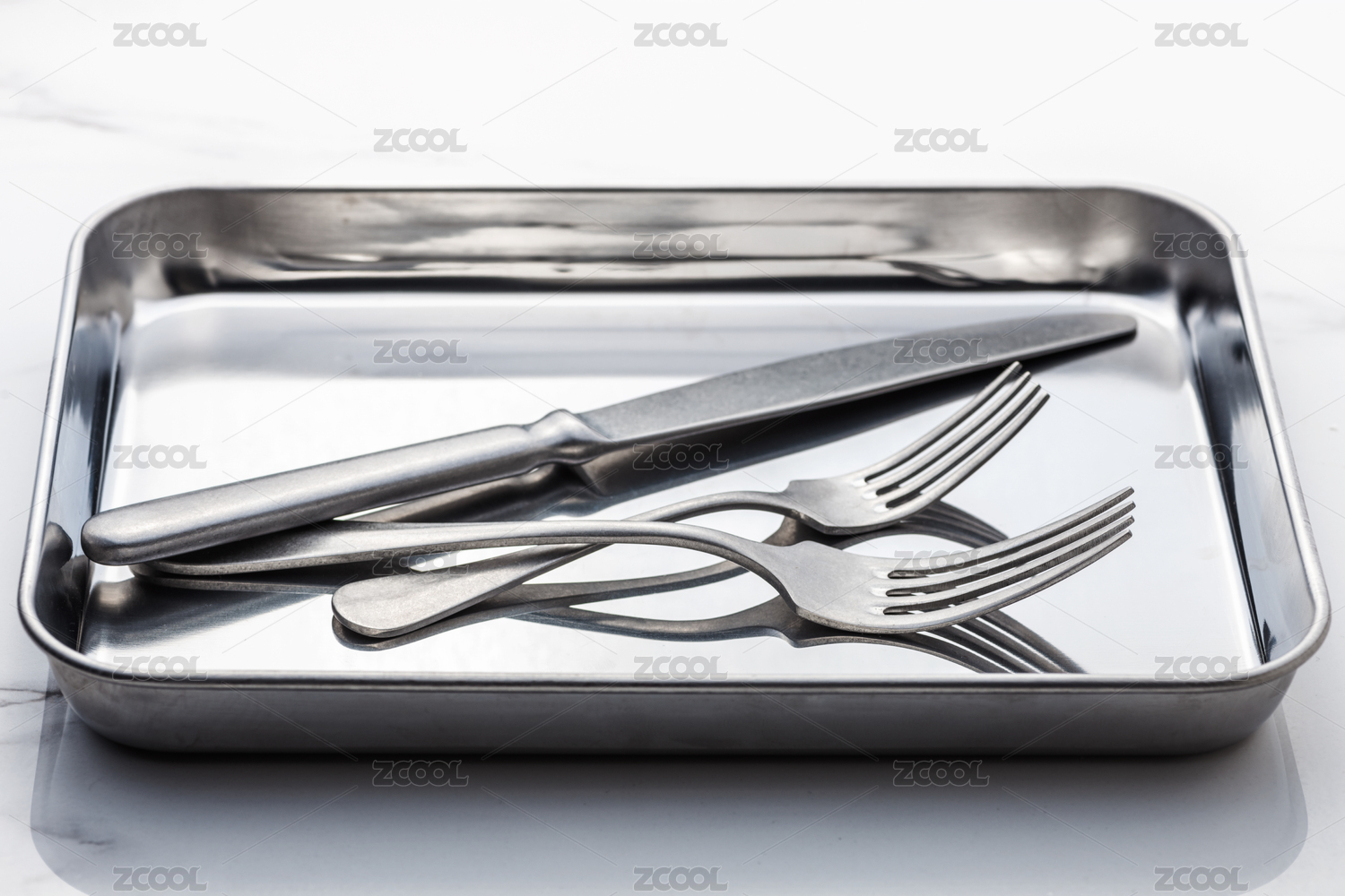 鐵盤子里的餐具