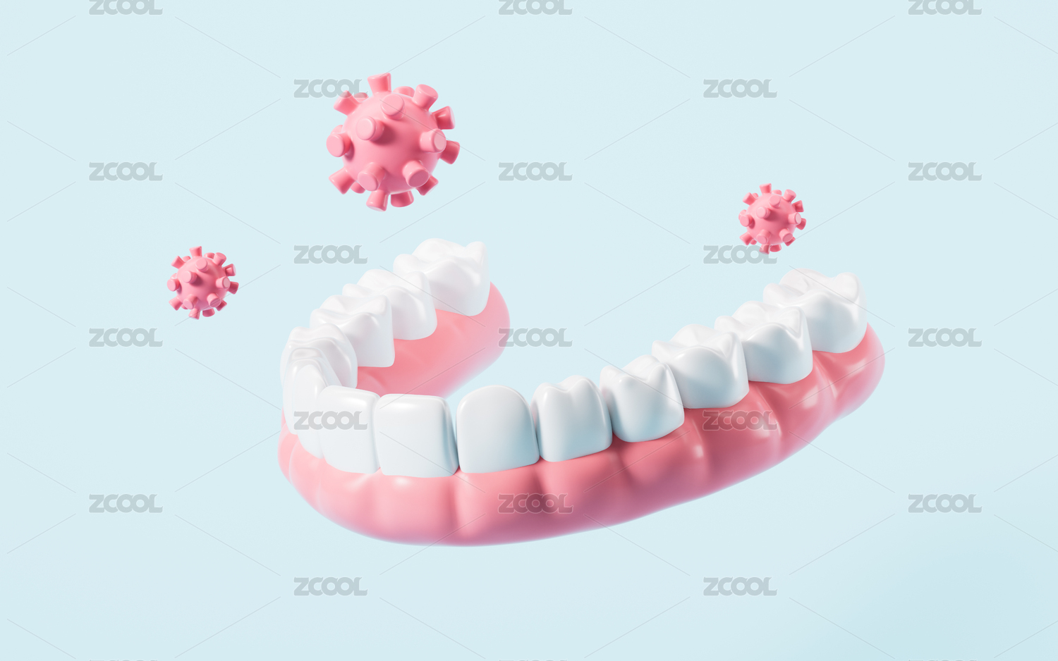 病毒侵害牙齒口腔衛(wèi)生概念3D渲染