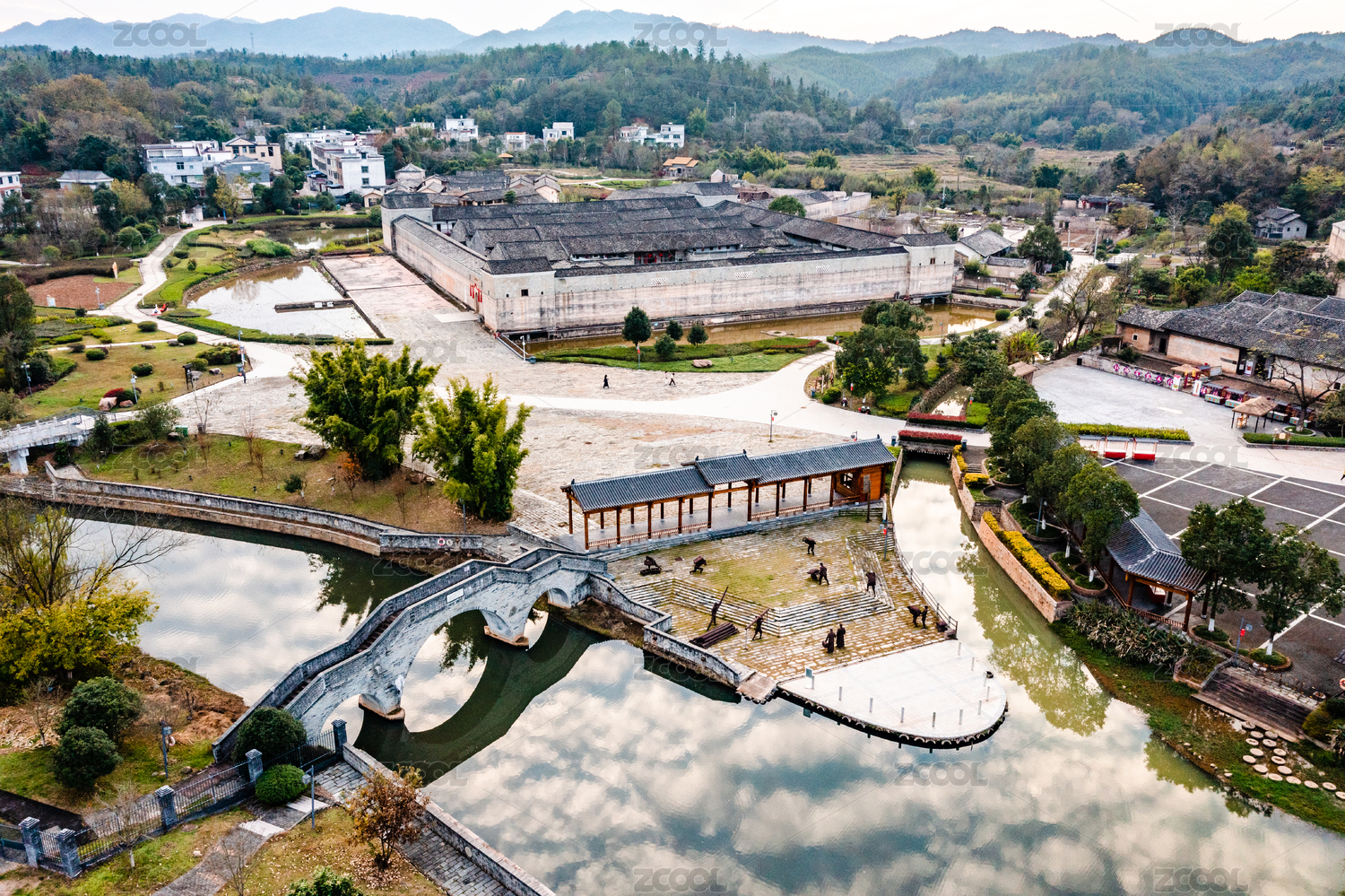 春天的江西省贛州市安遠(yuǎn)縣的鄉(xiāng)村民房風(fēng)光