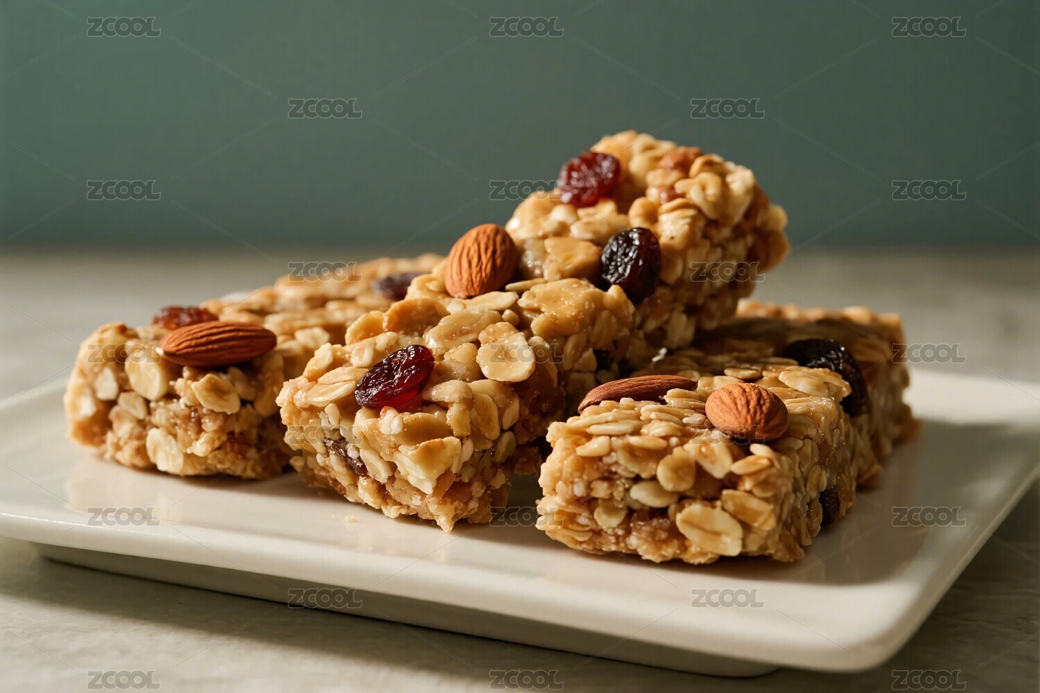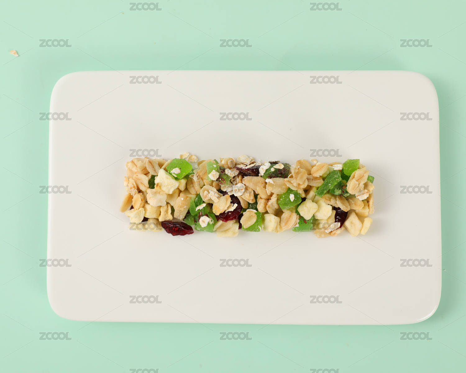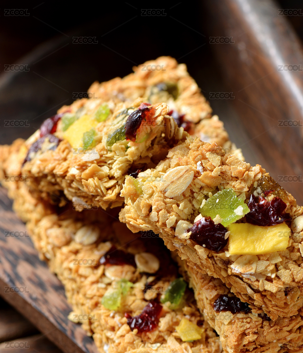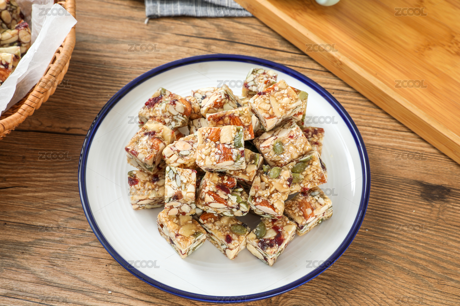木盤上的燕麥棒與堅果