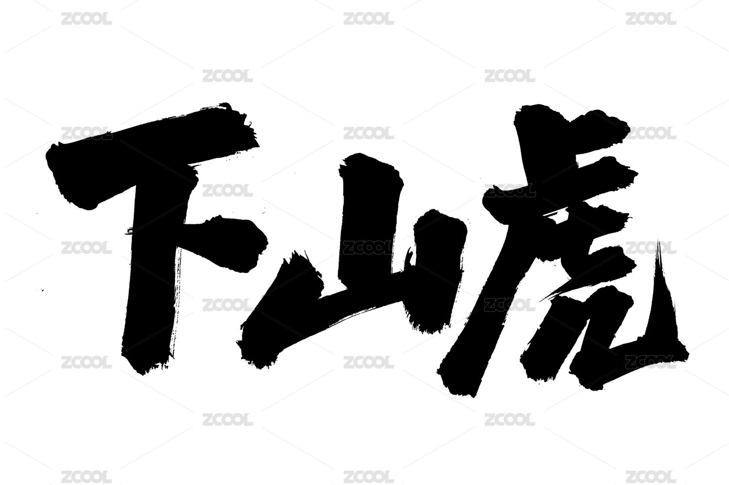 手寫(xiě)漢字書(shū)法字體萌虎下山