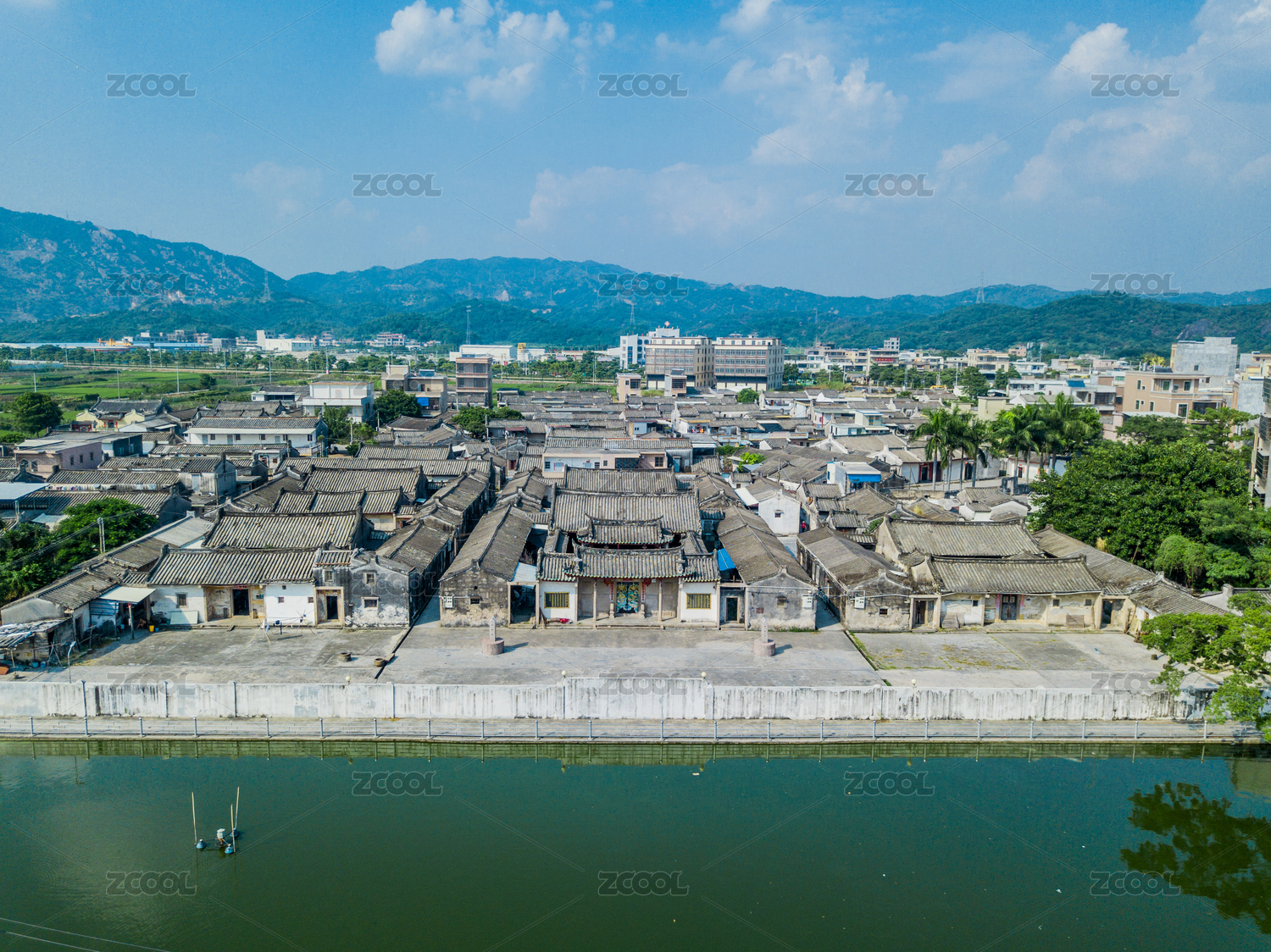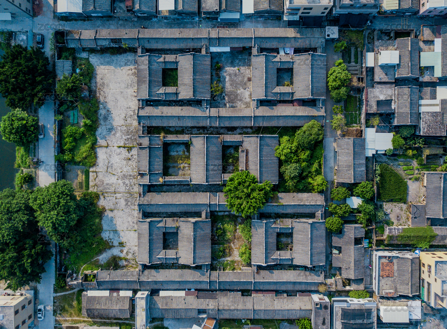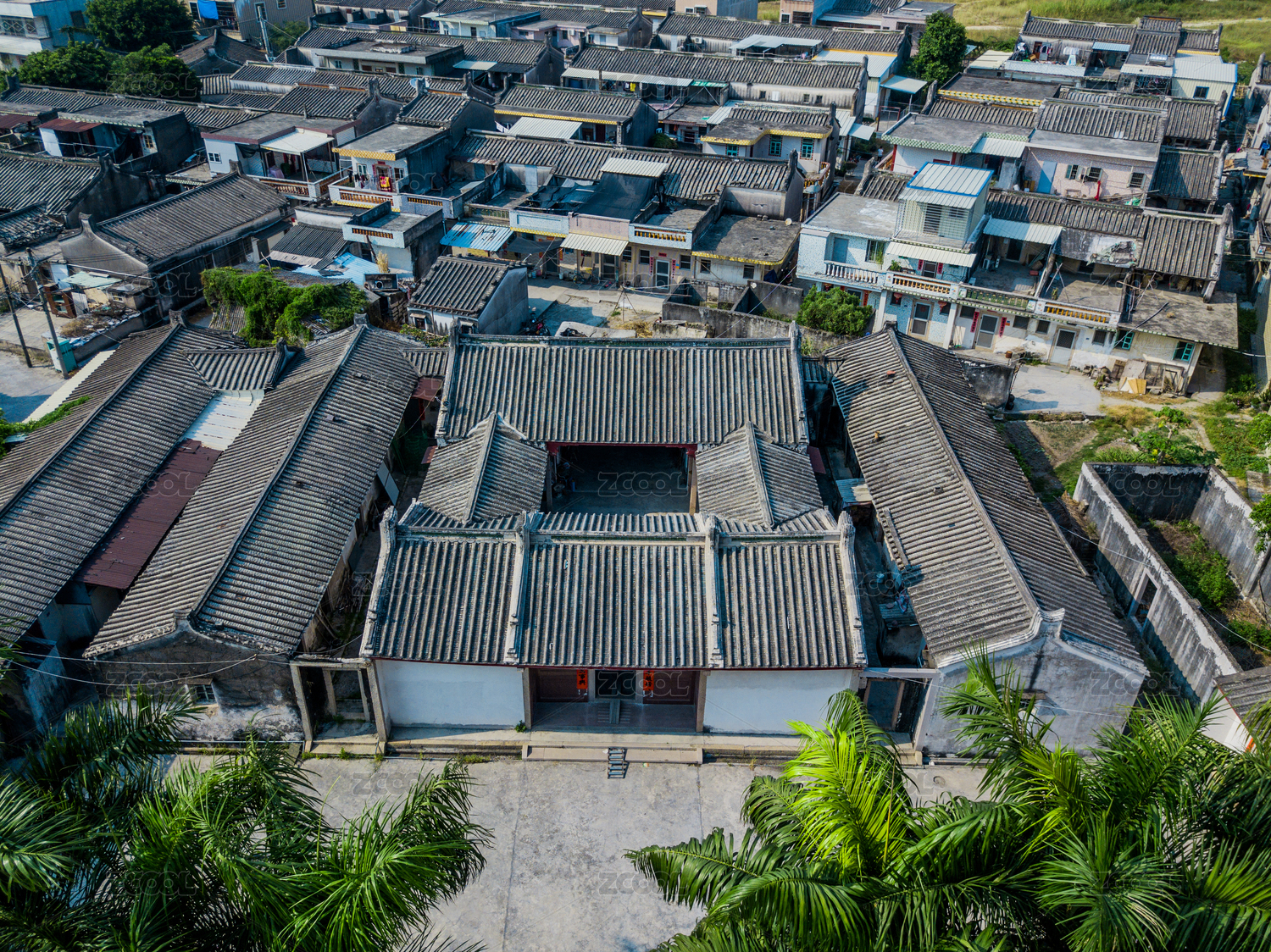 一片中國(guó)潮汕地區(qū)傳統(tǒng)四點(diǎn)金建筑群