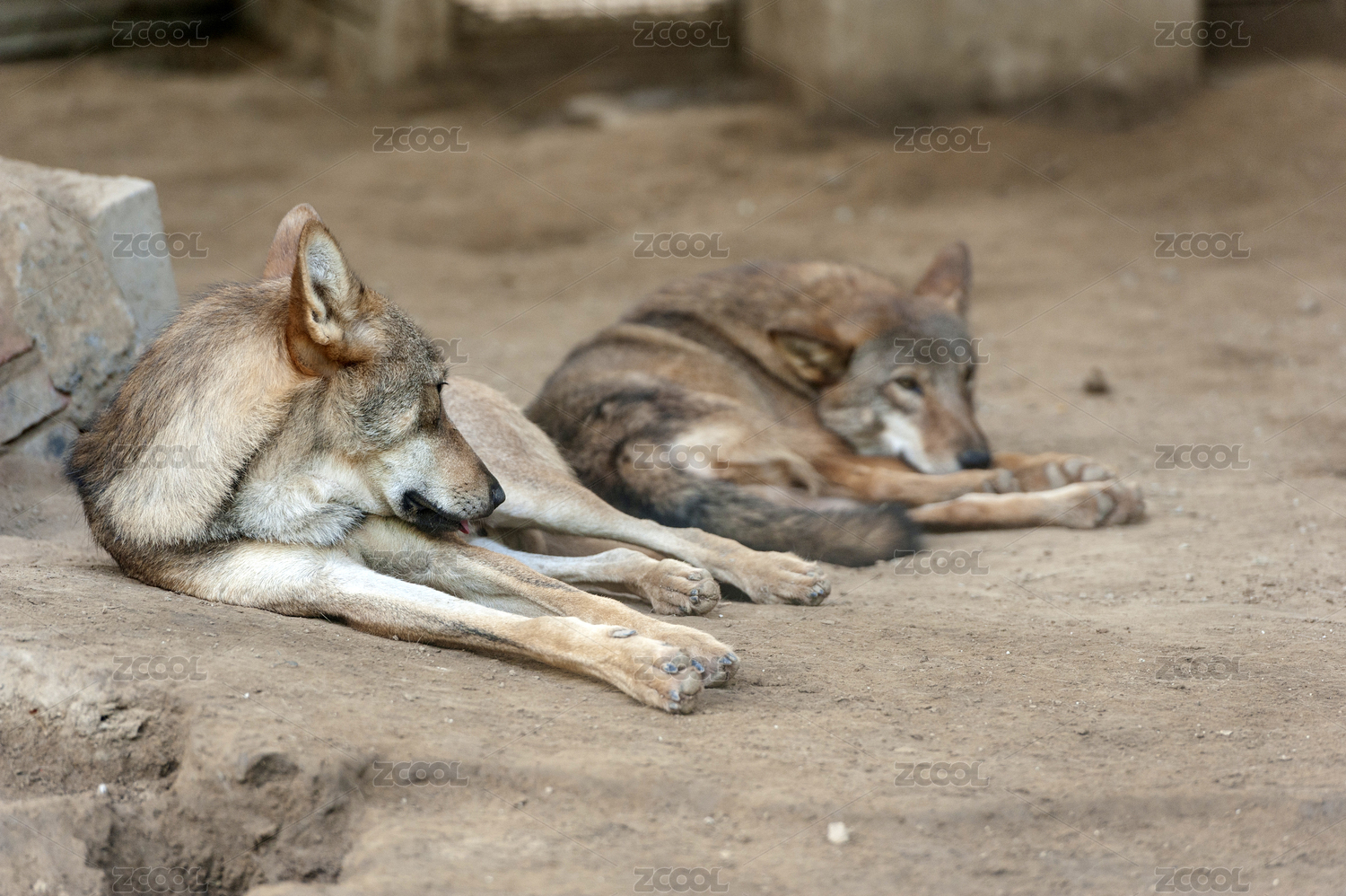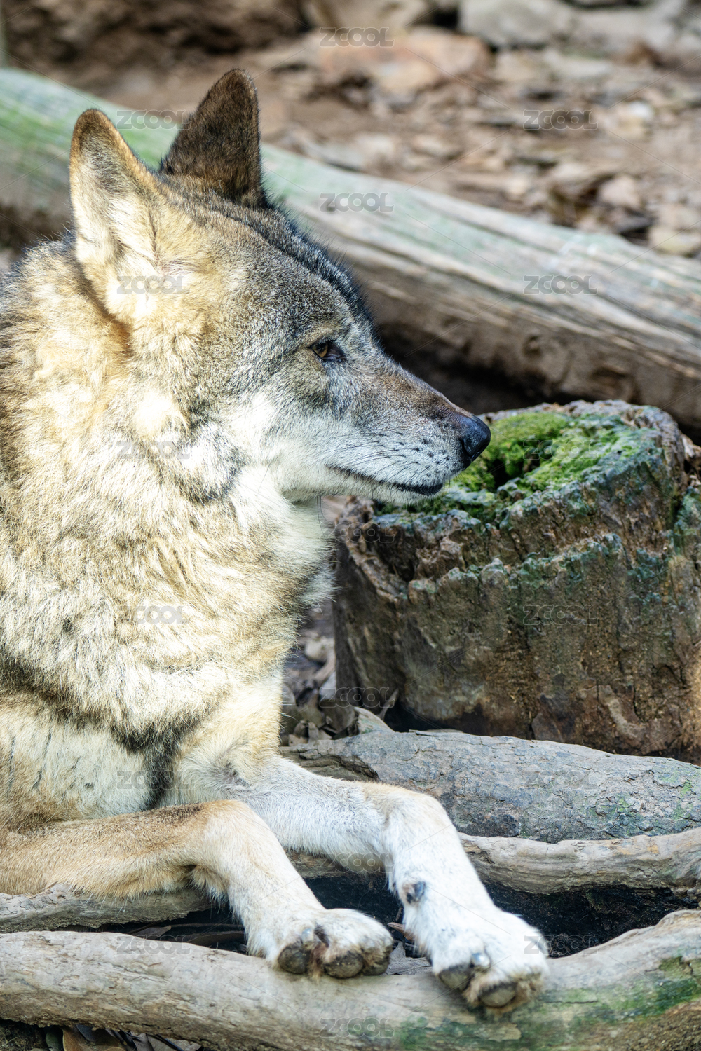 趴著的灰狼