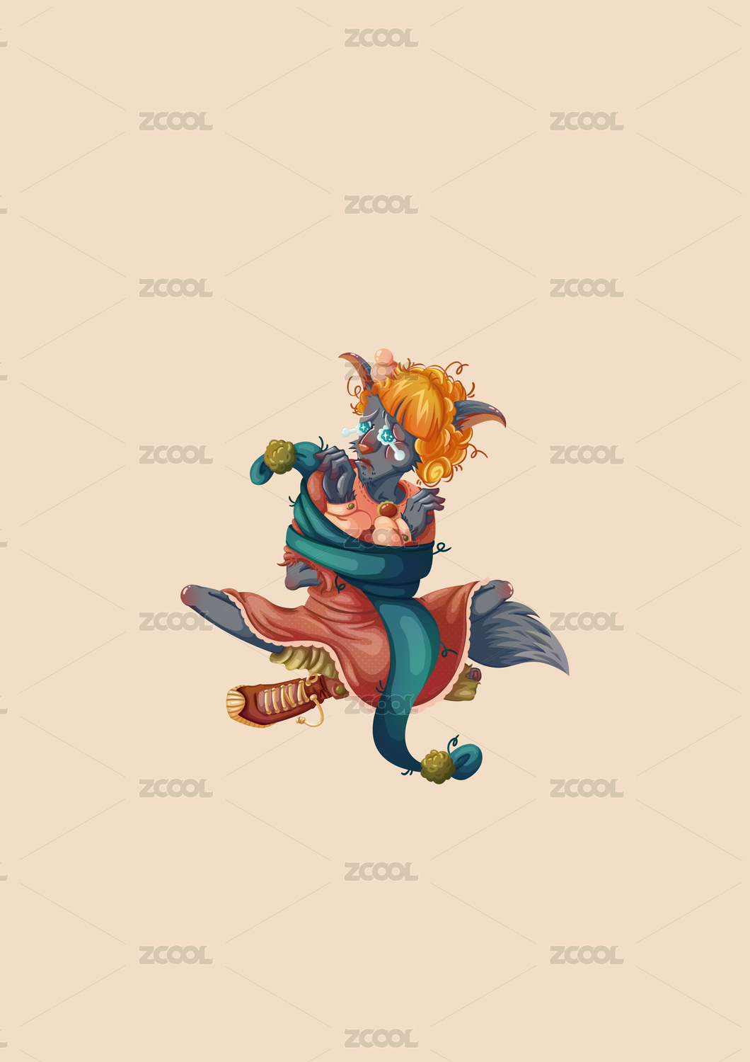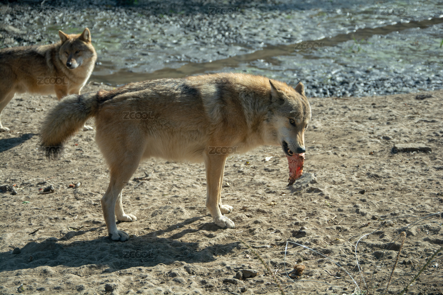 咬著布袋子的灰狼
