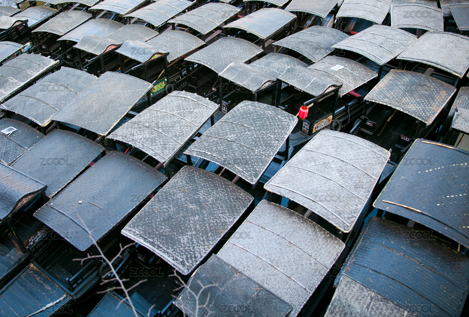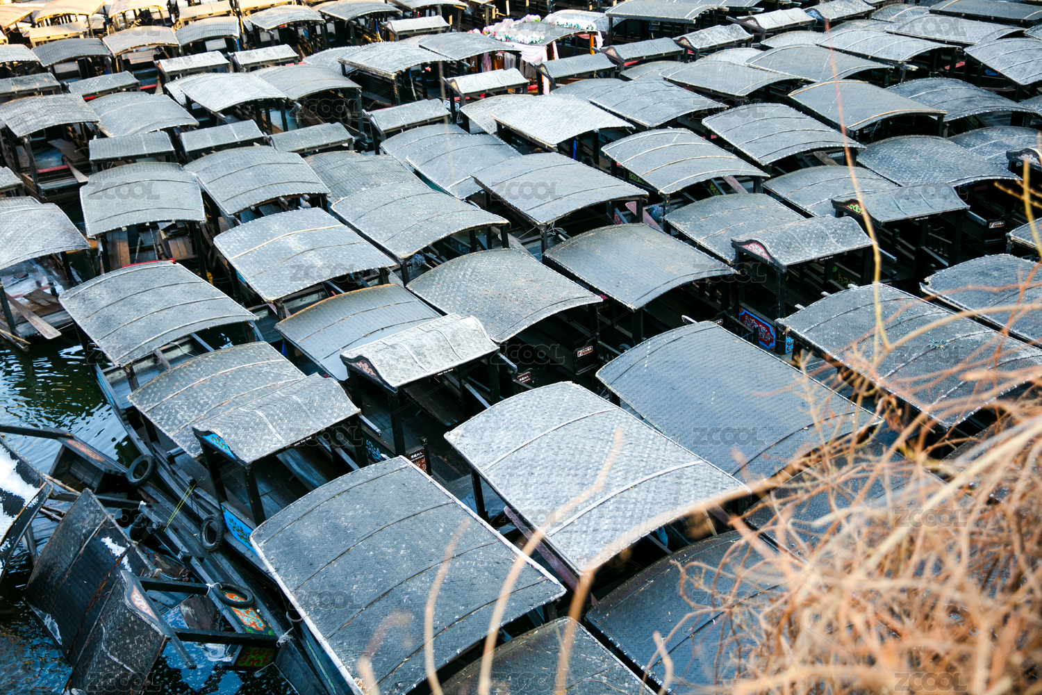 停泊在港口密密麻麻的小船
