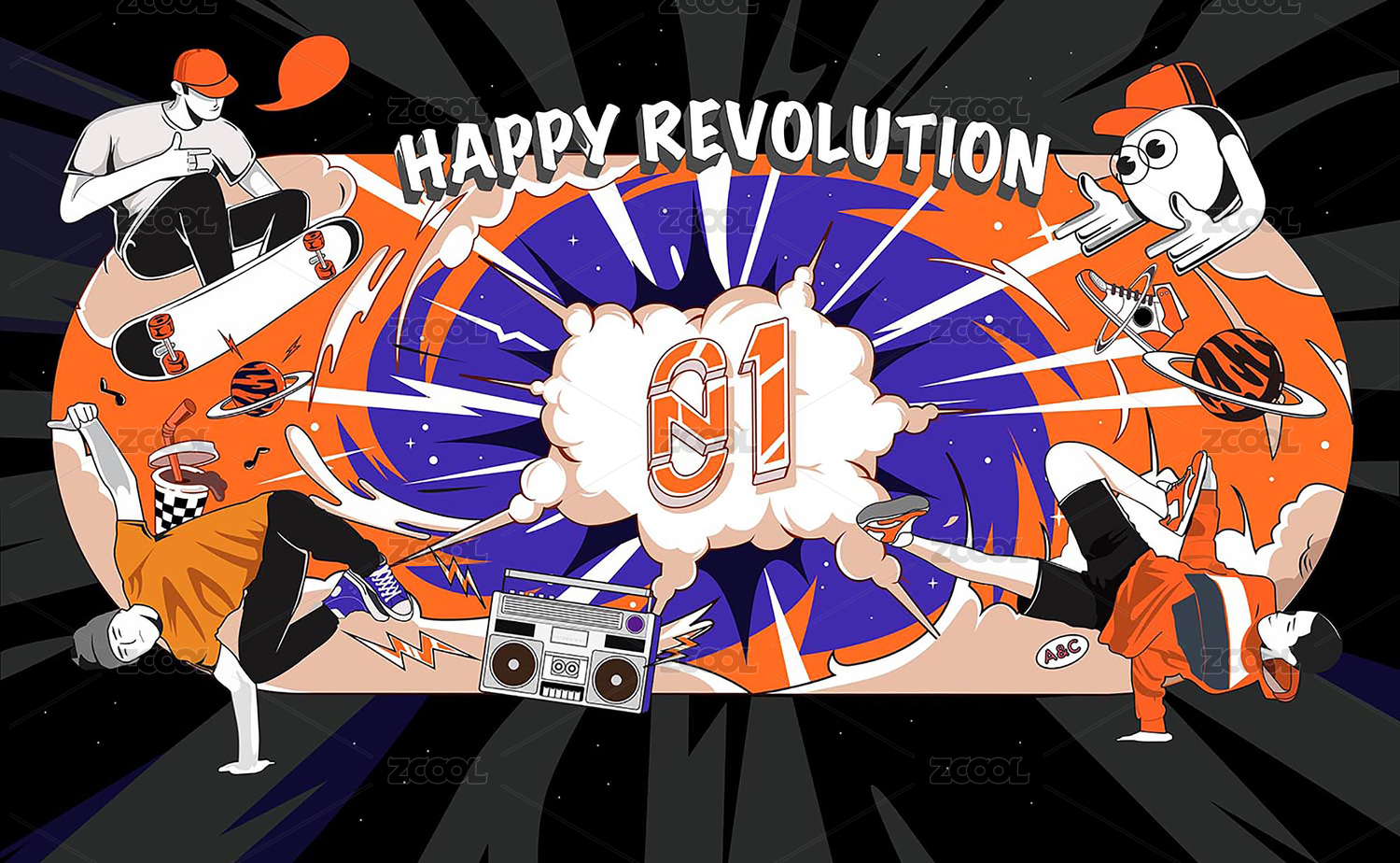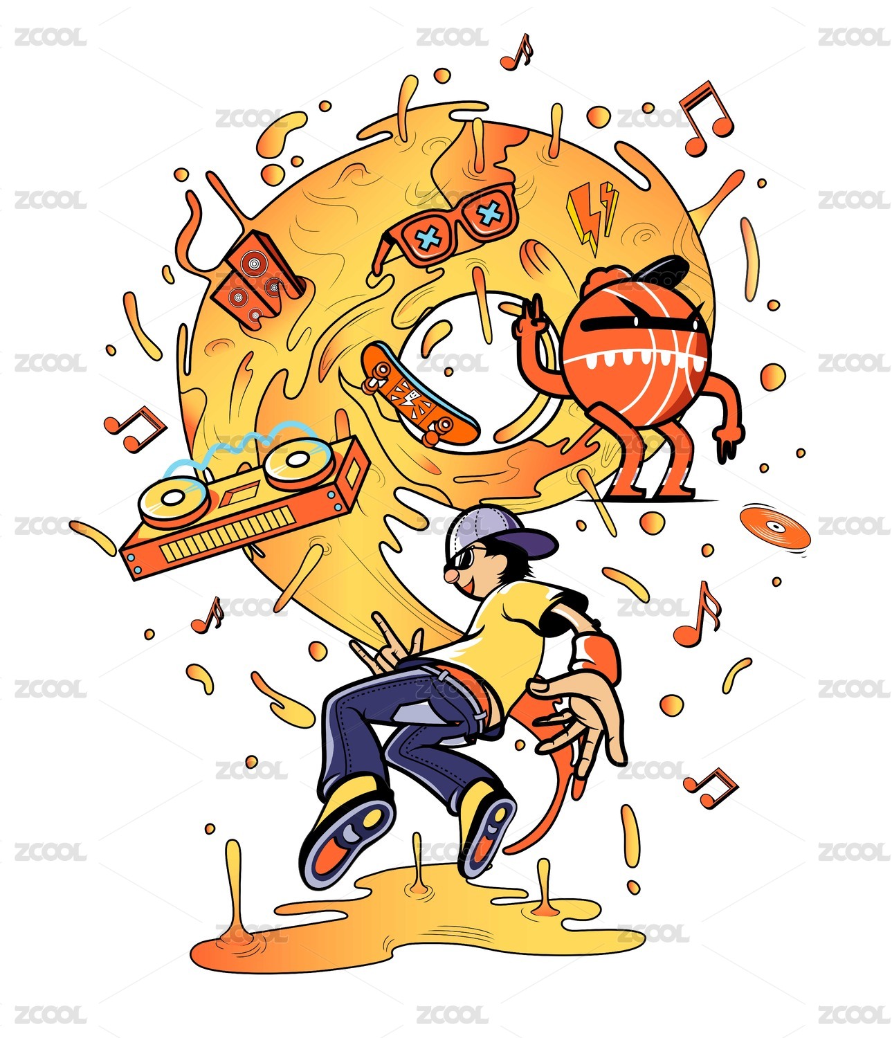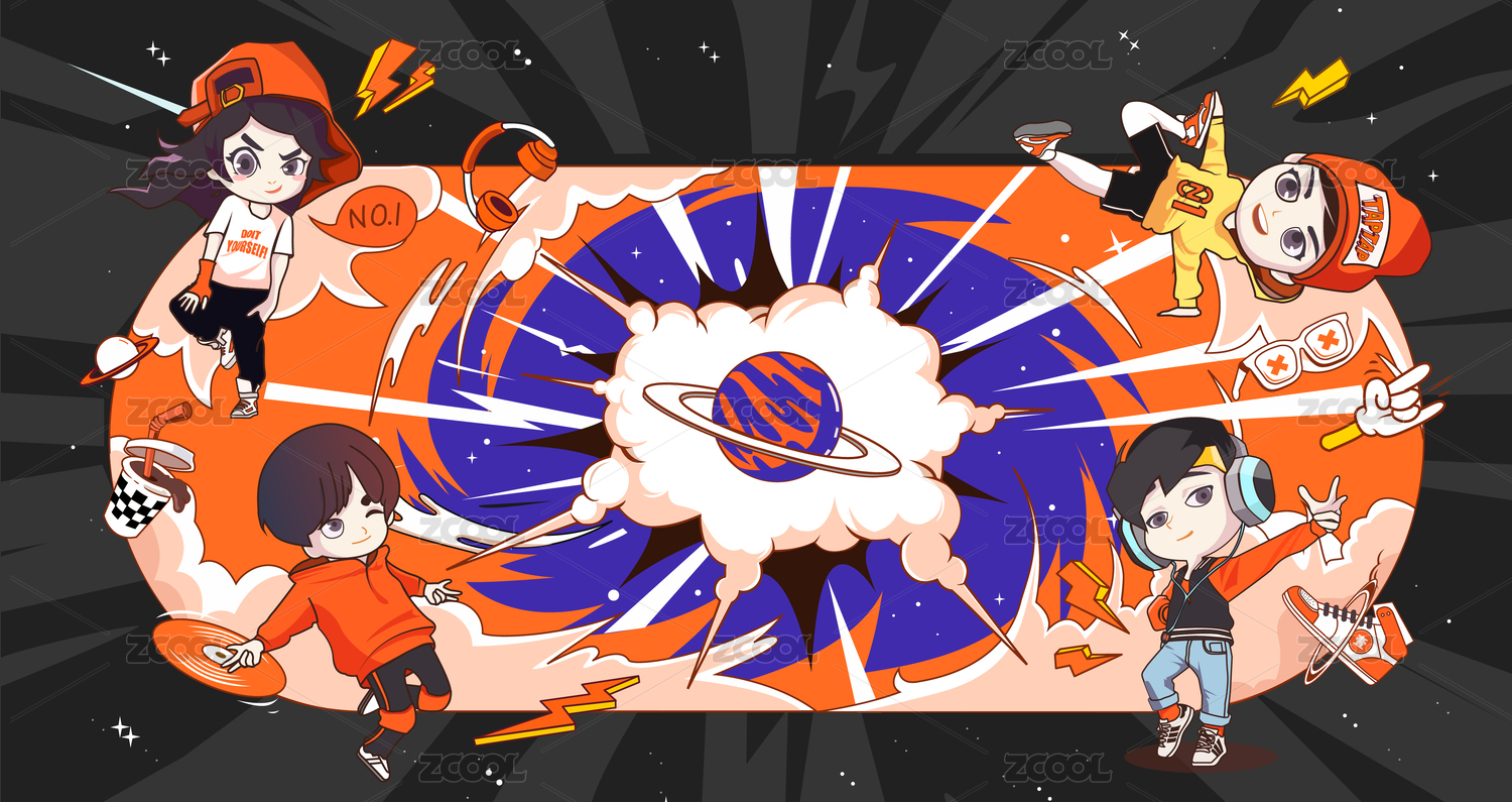 Q版嘻哈潮流矢量插畫