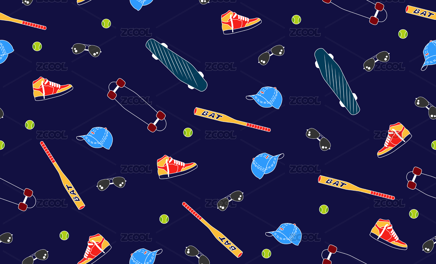 潮流可愛(ài)運(yùn)動(dòng)無(wú)縫插畫