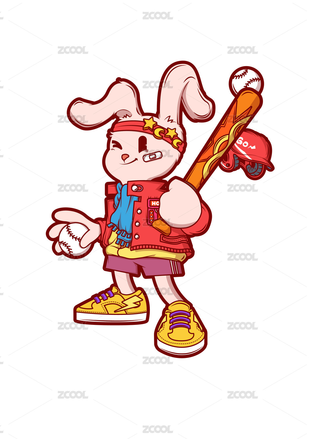 兔年打棒球的兔子潮流矢量插畫