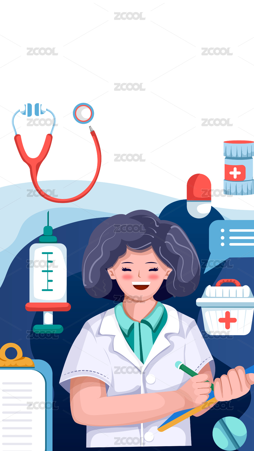 醫(yī)生手拿病例本開心的笑矢量插畫