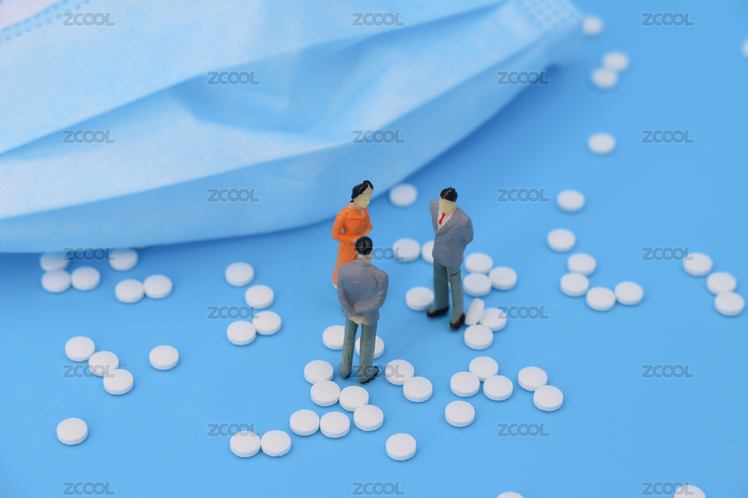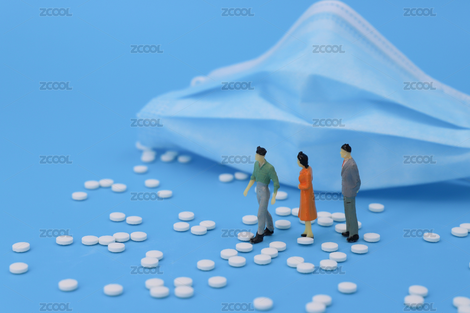 生病吃藥口罩微縮小人醫(yī)療創(chuàng)意概念