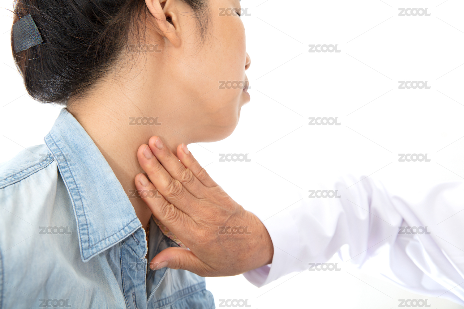 醫(yī)生正撫摸著患者的脖子檢查疾病