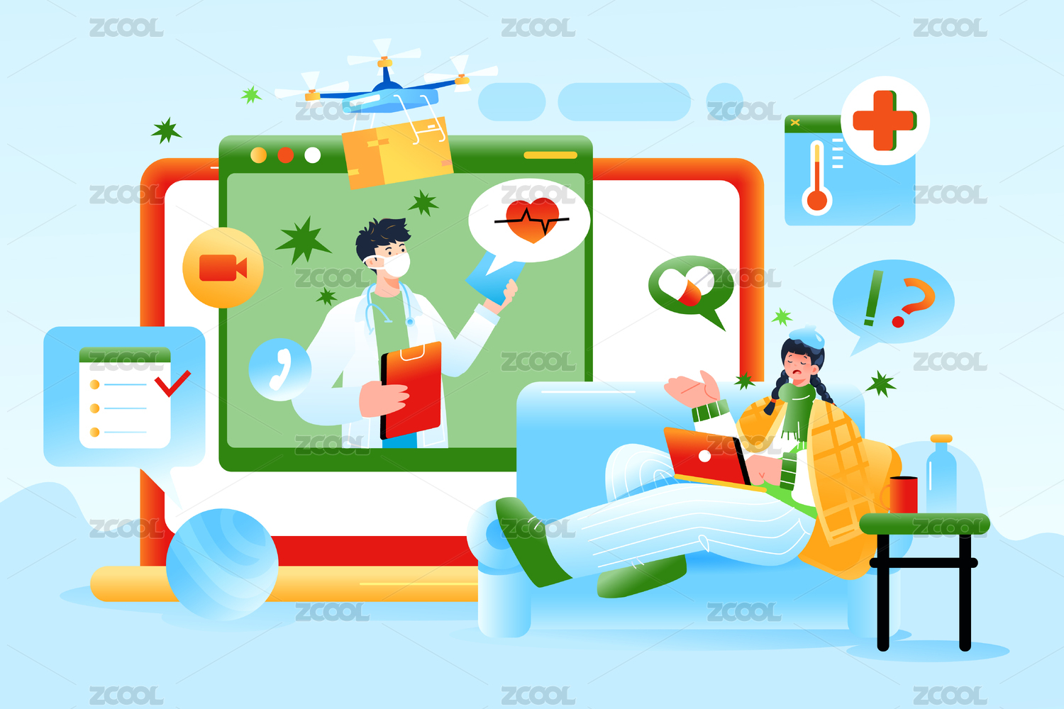 線上預(yù)約看病醫(yī)療健康人物插畫