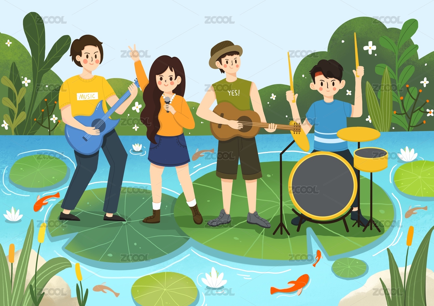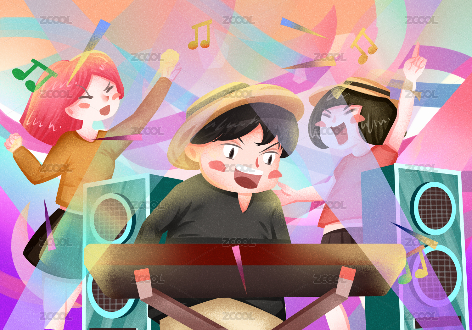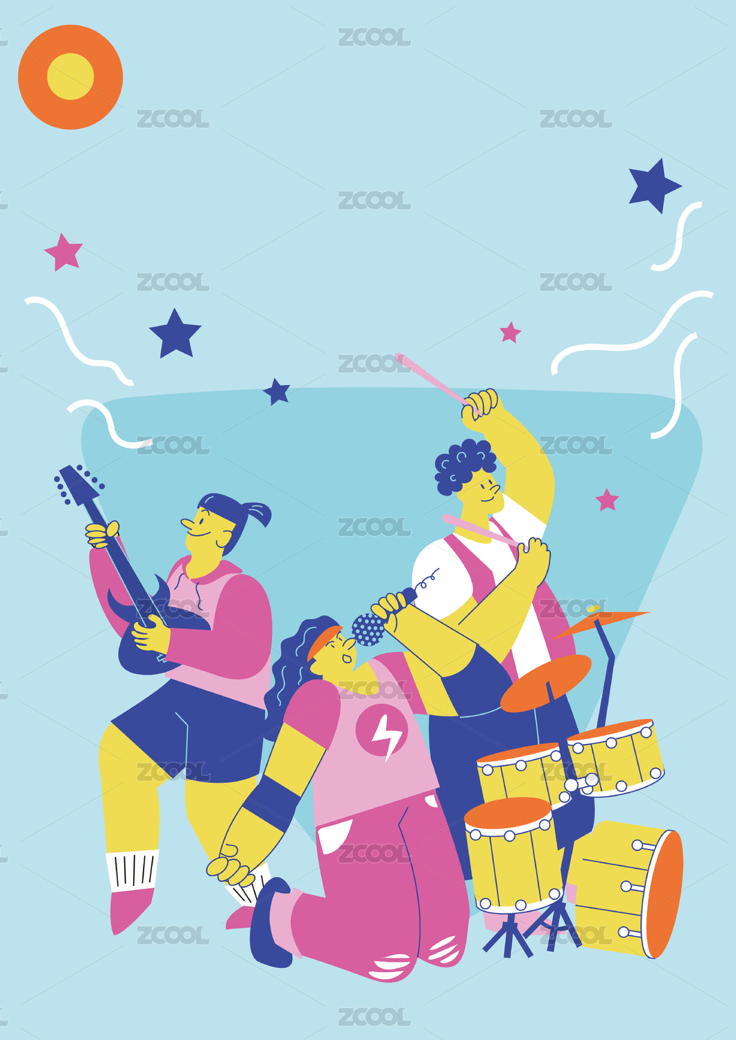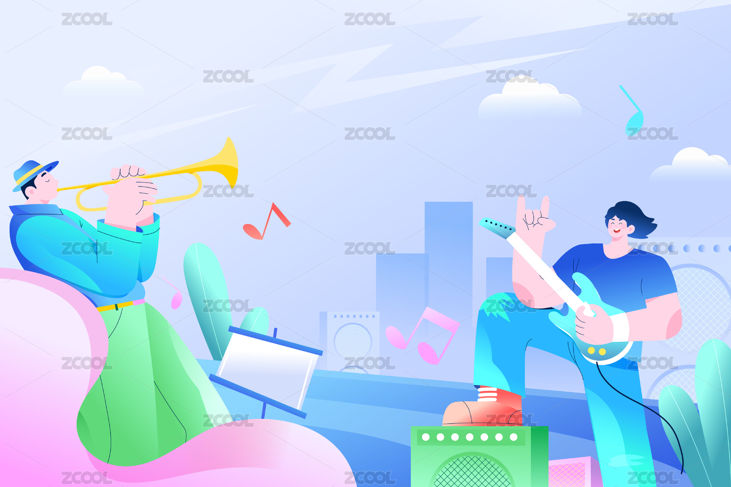 國際音樂日搖滾樂隊在舞臺上演奏表演插畫