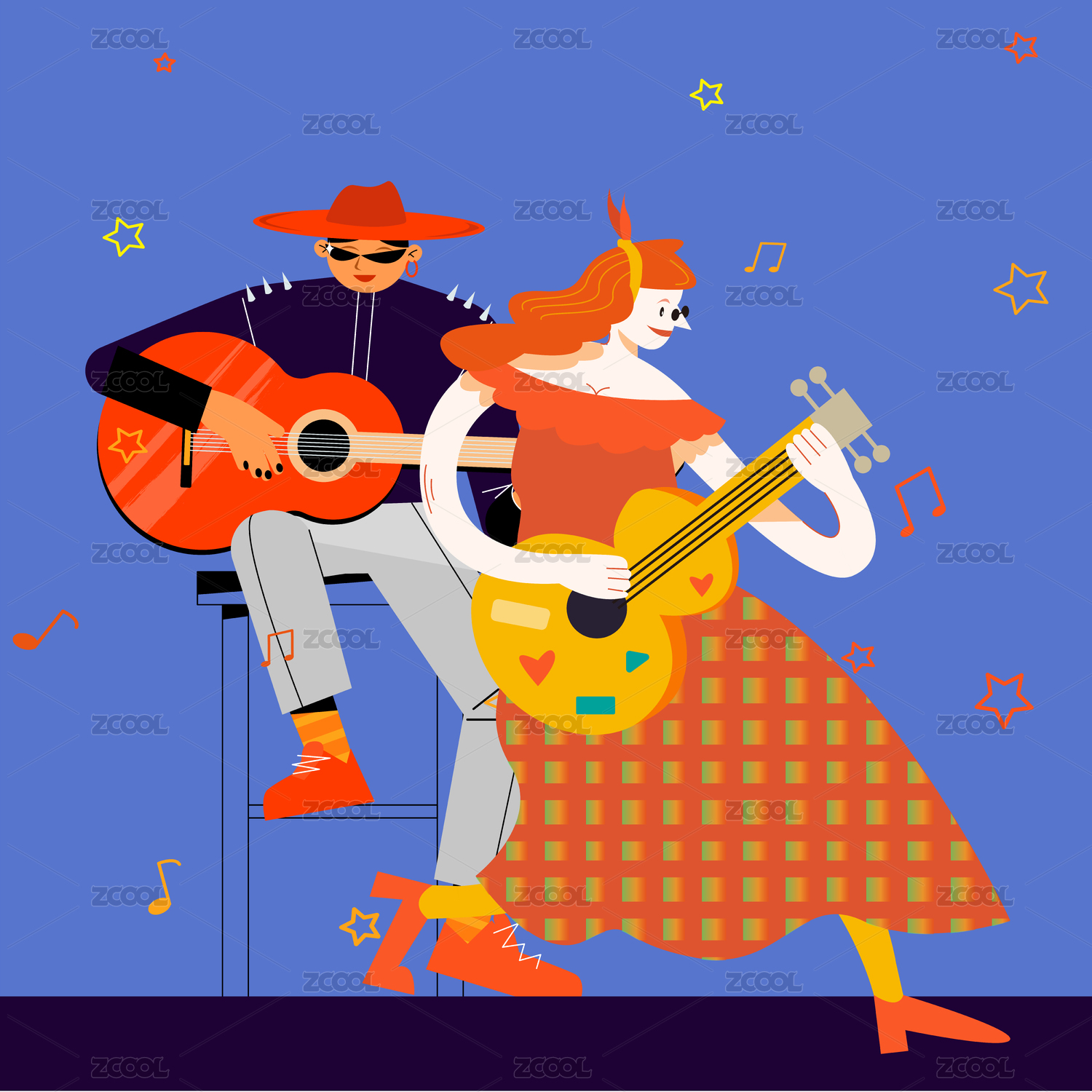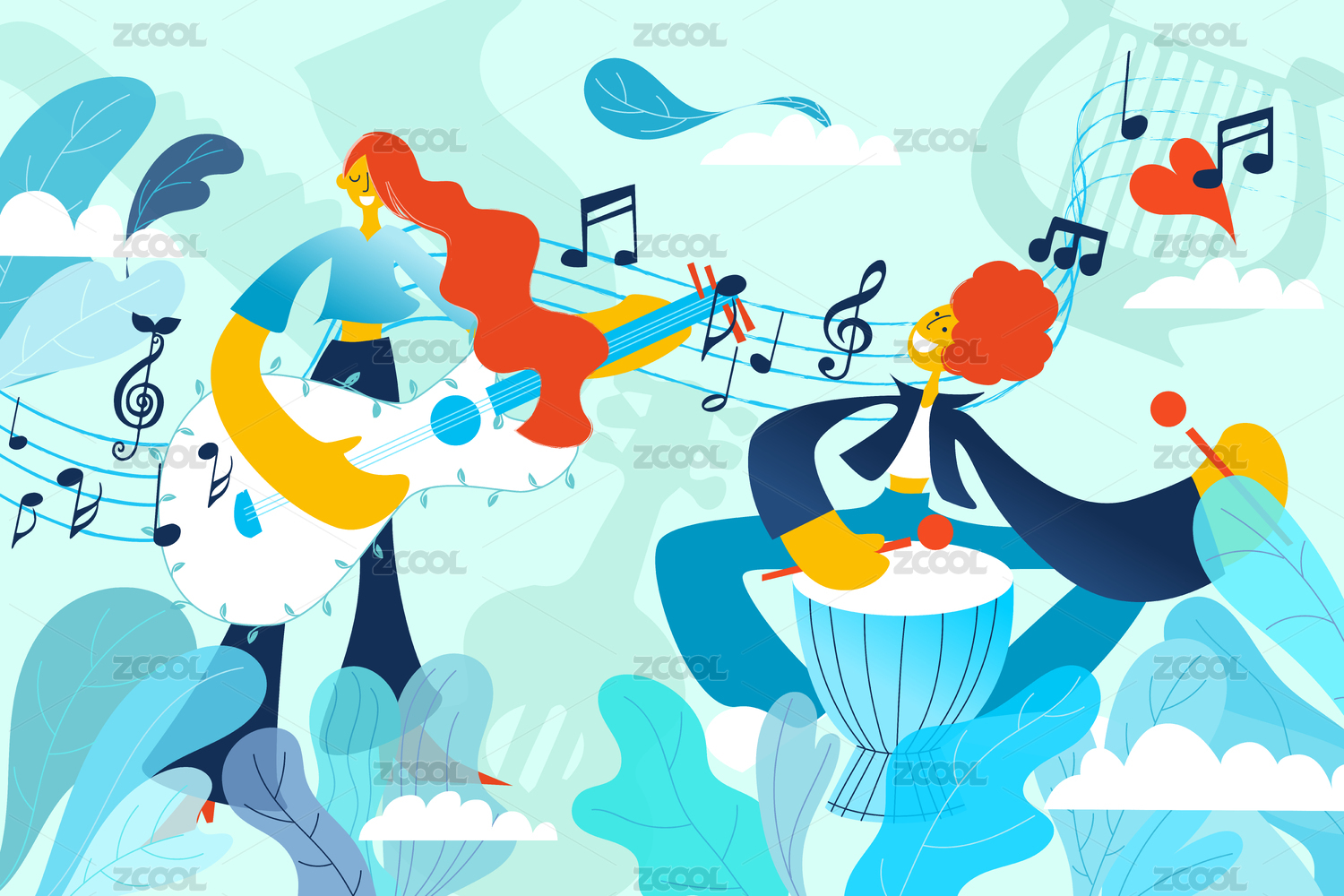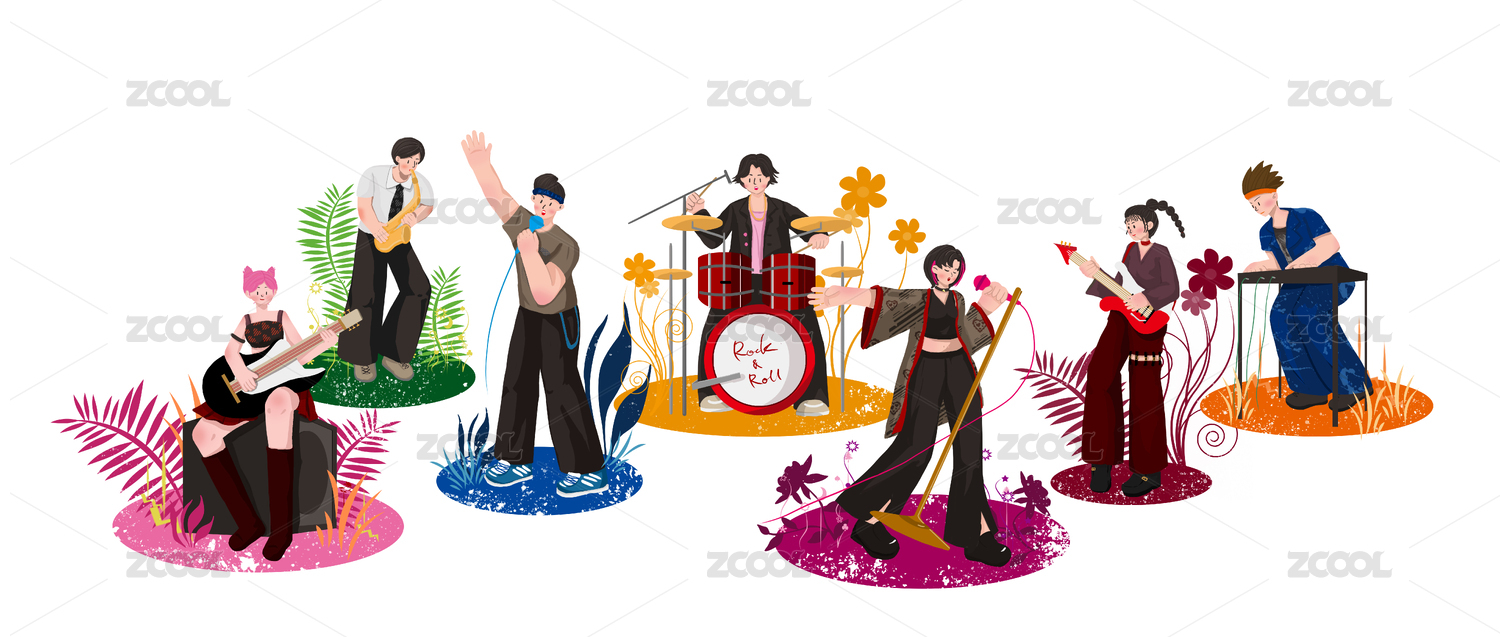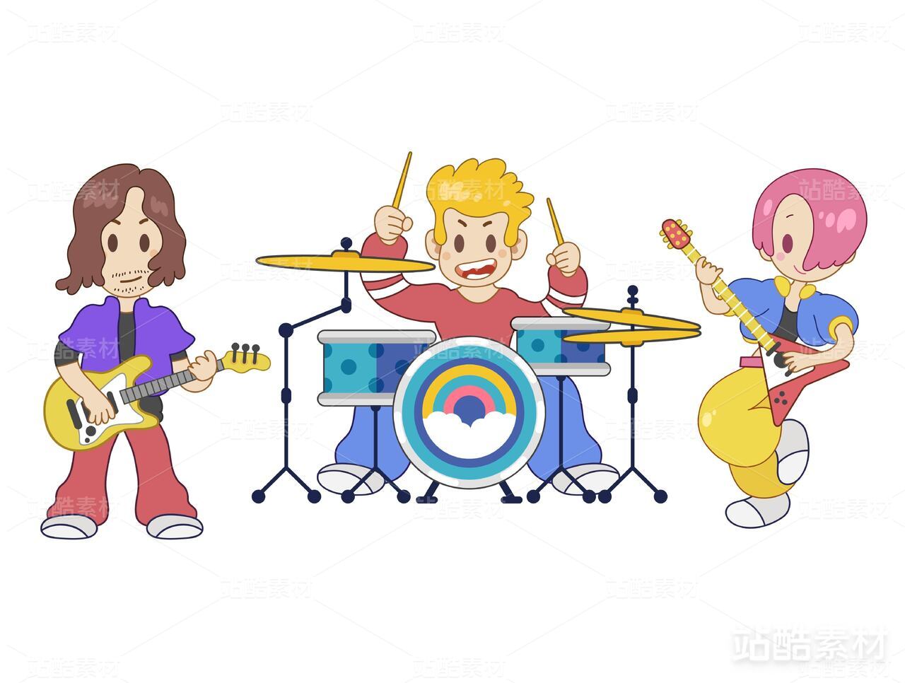 國際音樂日搖滾樂隊在舞臺上演奏表演插畫