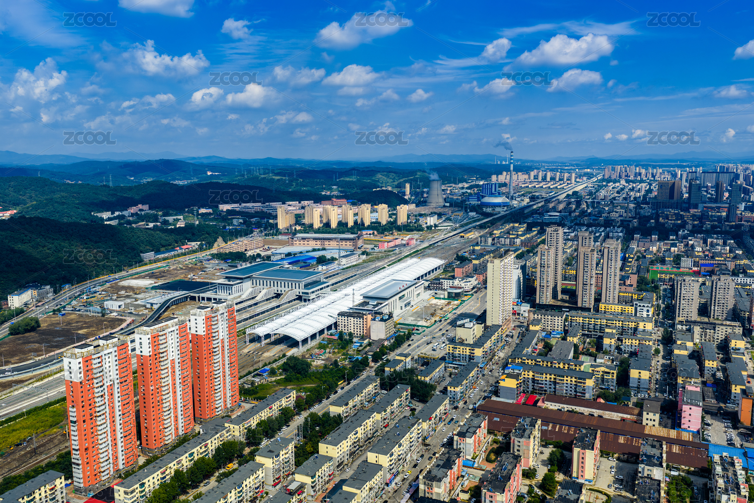 遼寧撫順站高鐵站航拍城市風(fēng)光