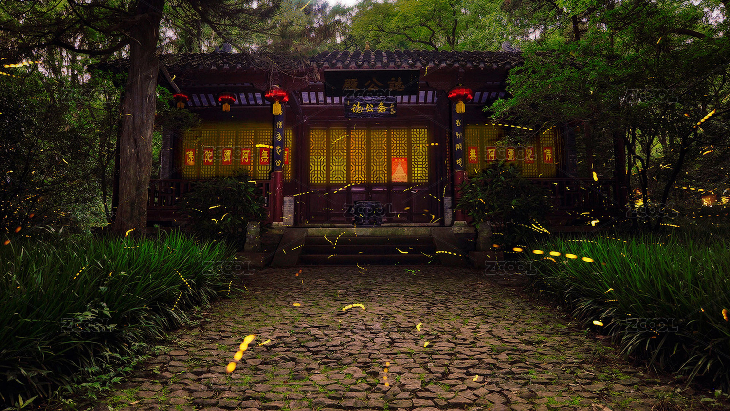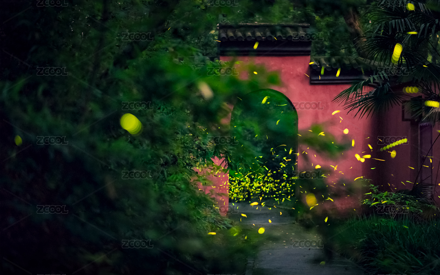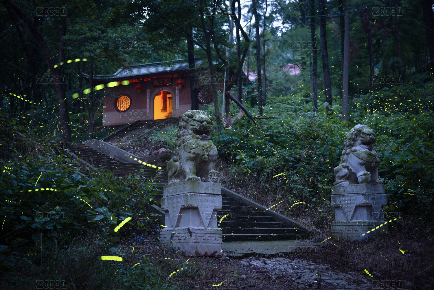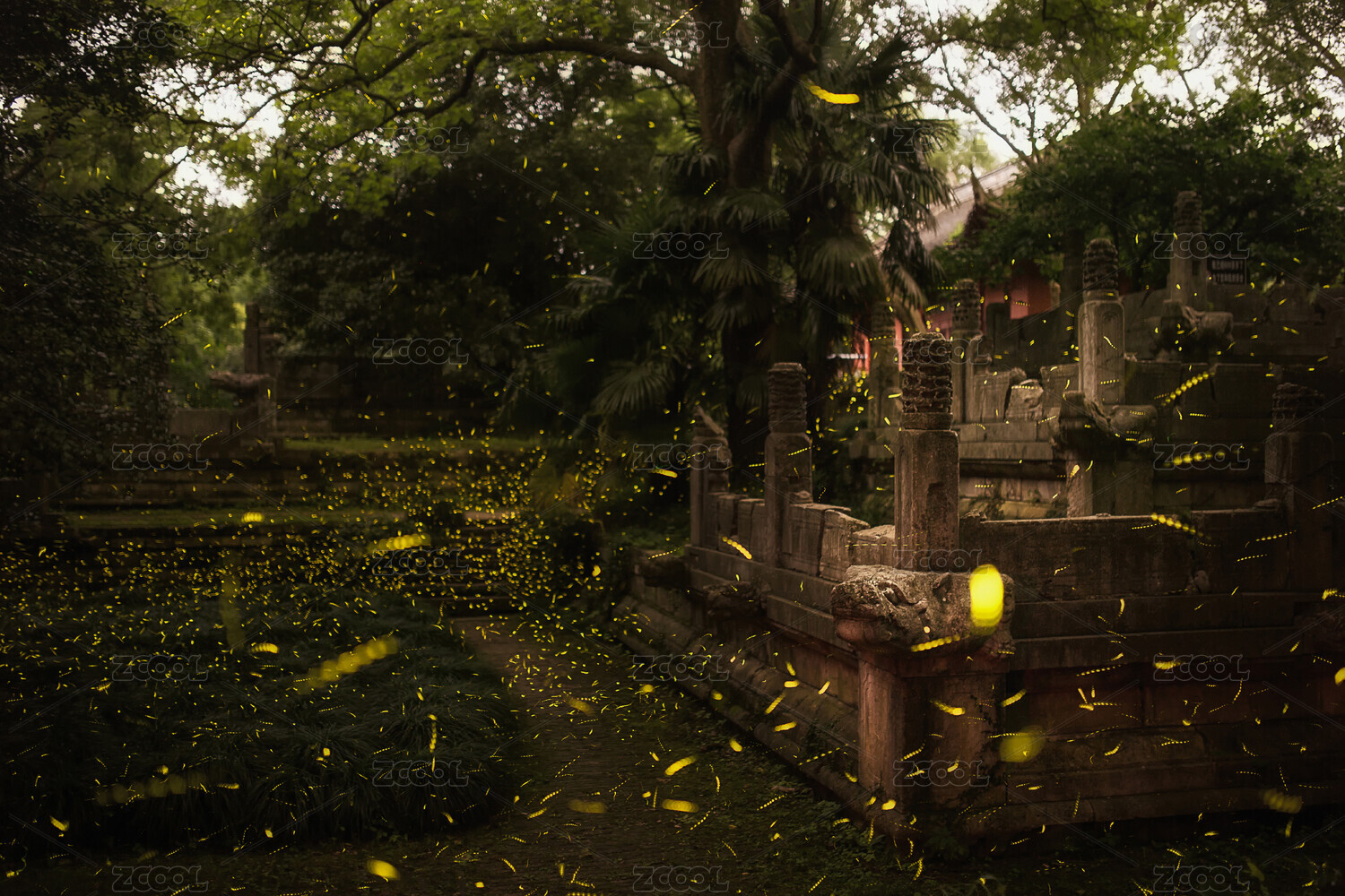 夏季中國江蘇南京兜率寺螢火蟲夜景風(fēng)光