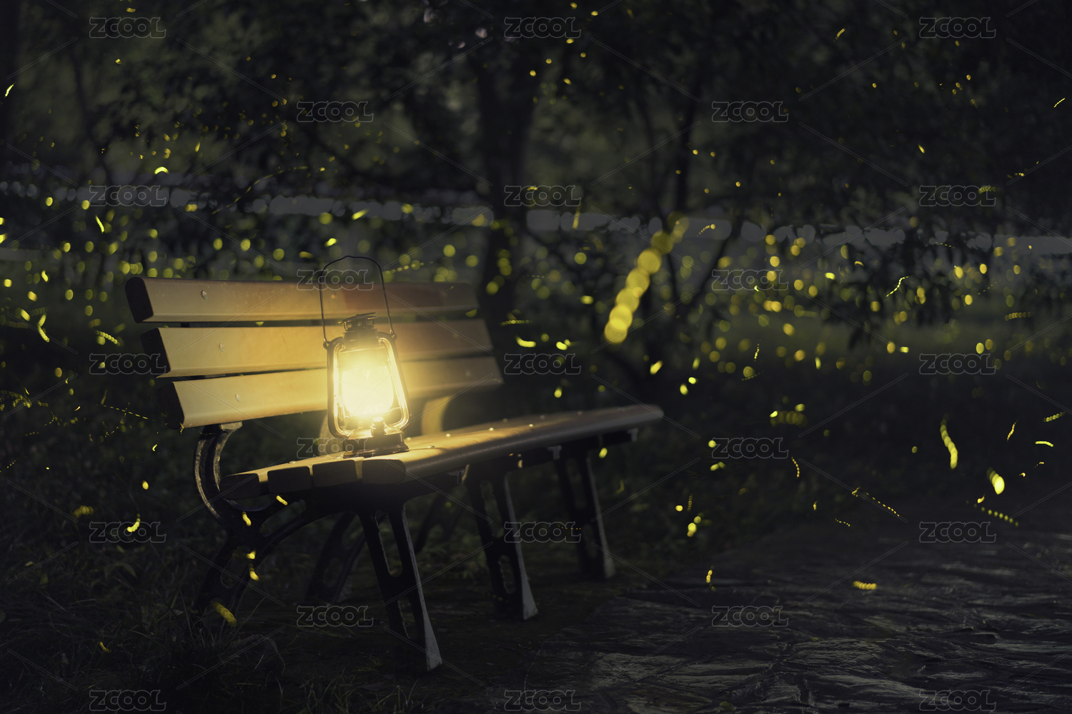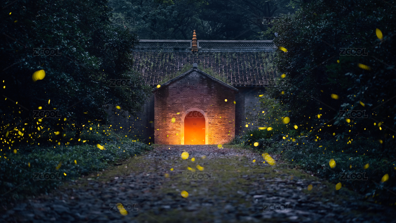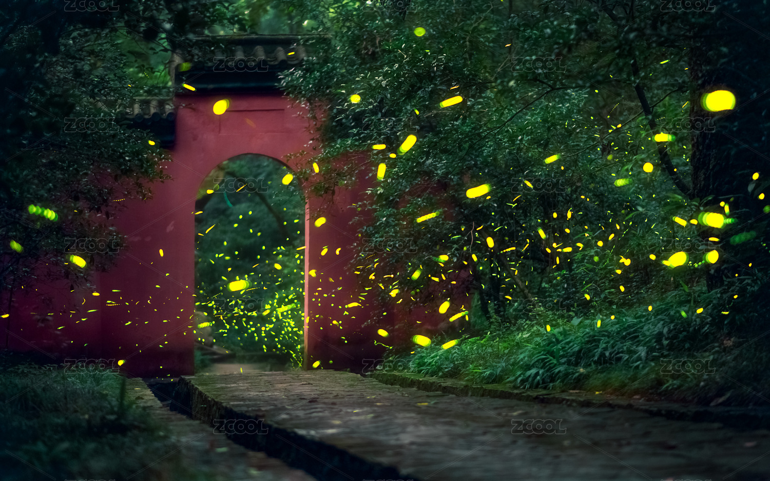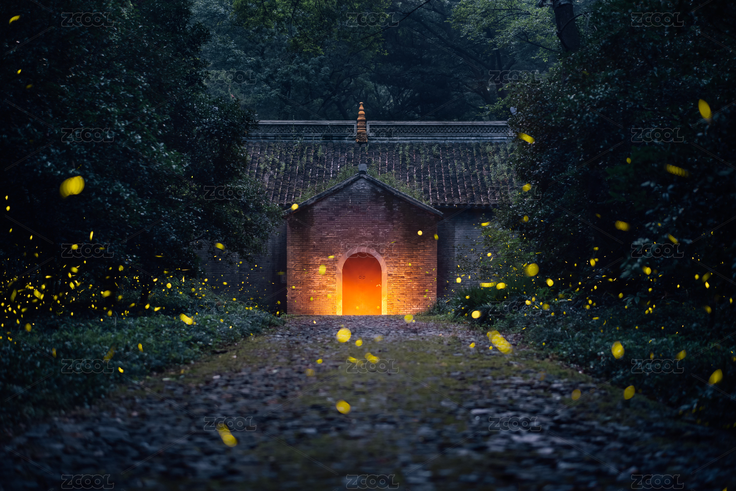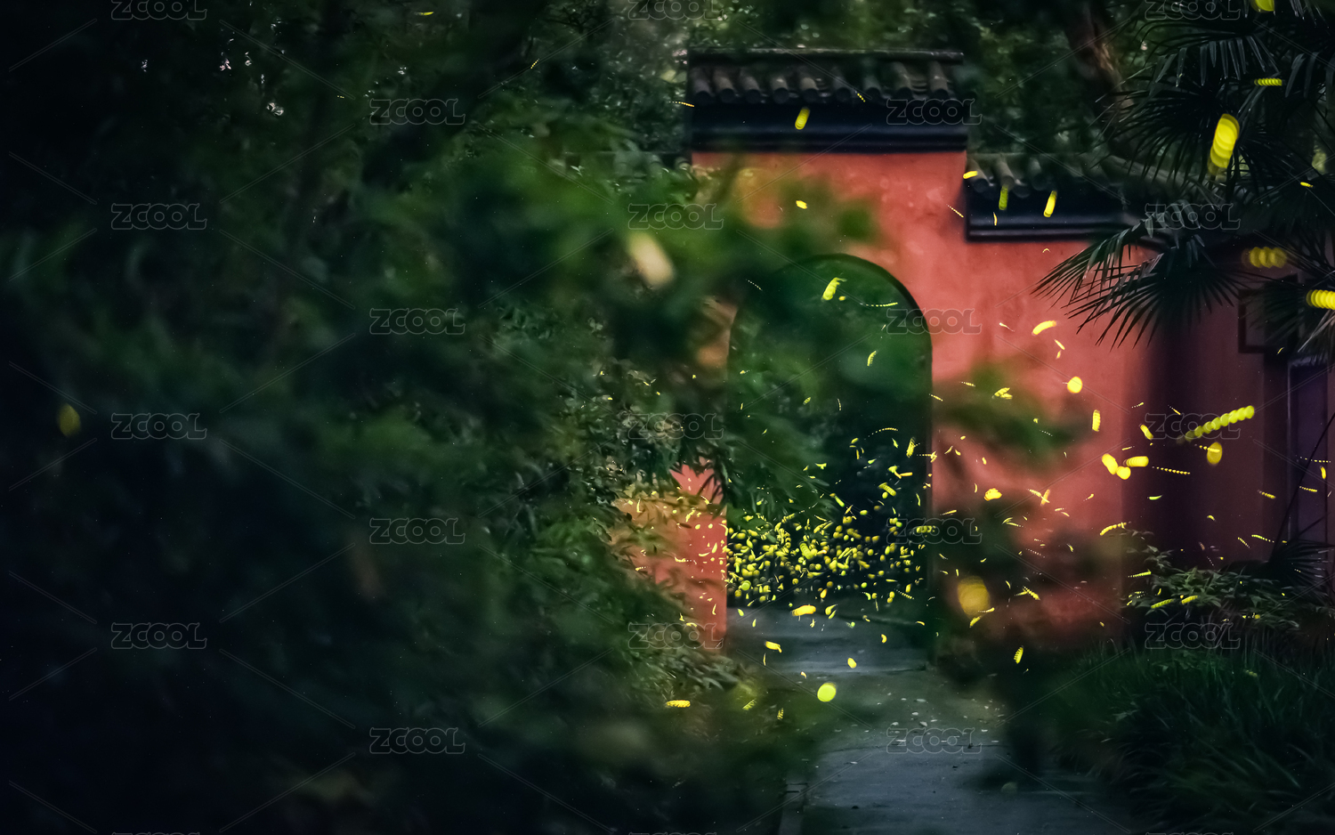 夏季中國江蘇南京兜率寺螢火蟲夜景風(fēng)光