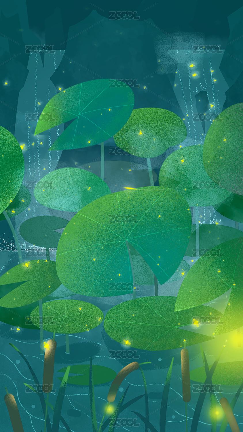 螢火蟲在夜里的荷塘