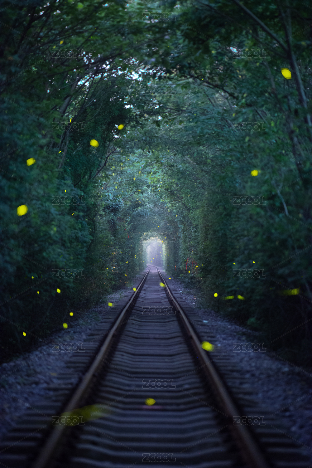 夏季中國江蘇南京愛情隧道螢火蟲夜景風(fēng)光