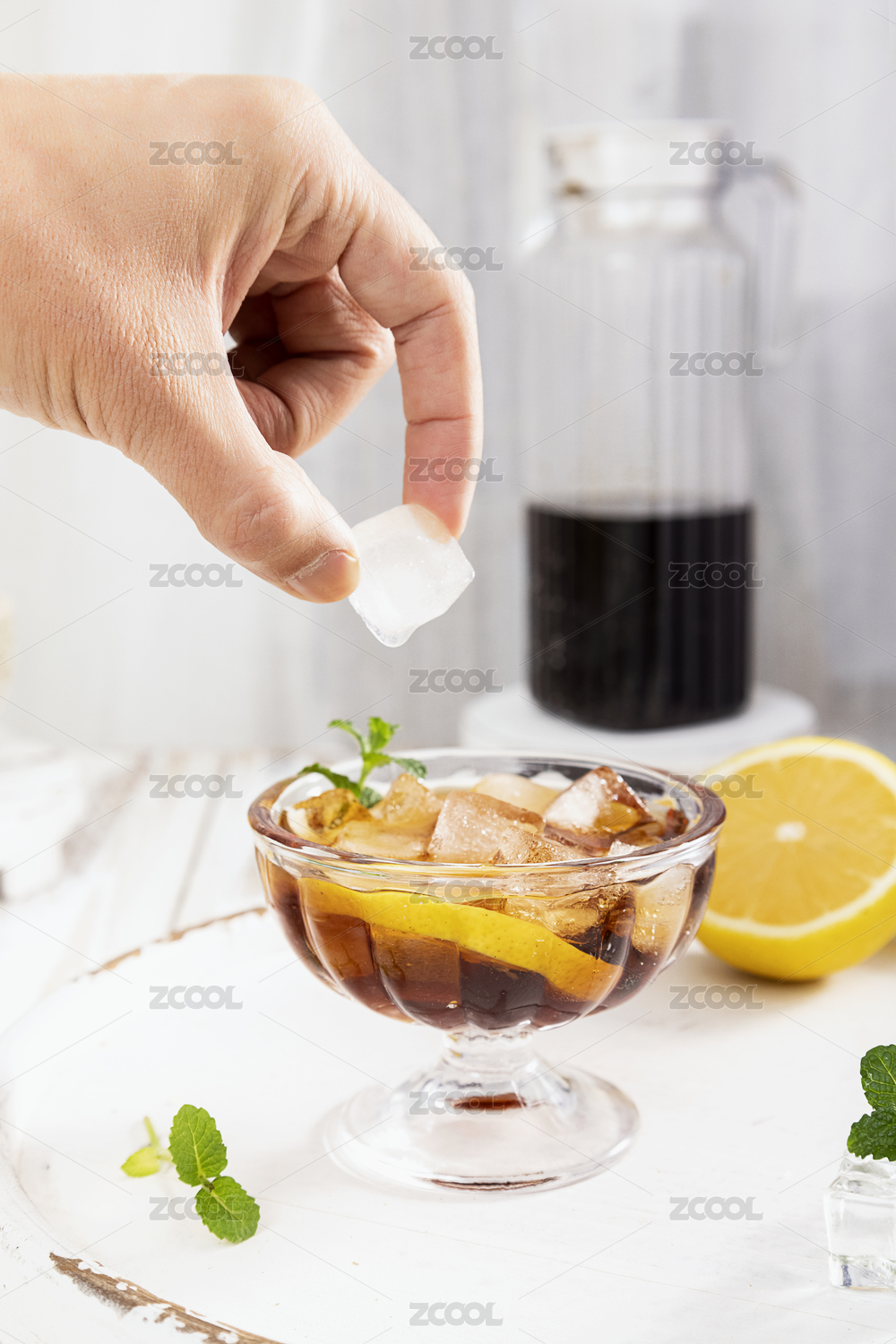 青檸冰塊氣泡水夏日冷飲暗調(diào)背景