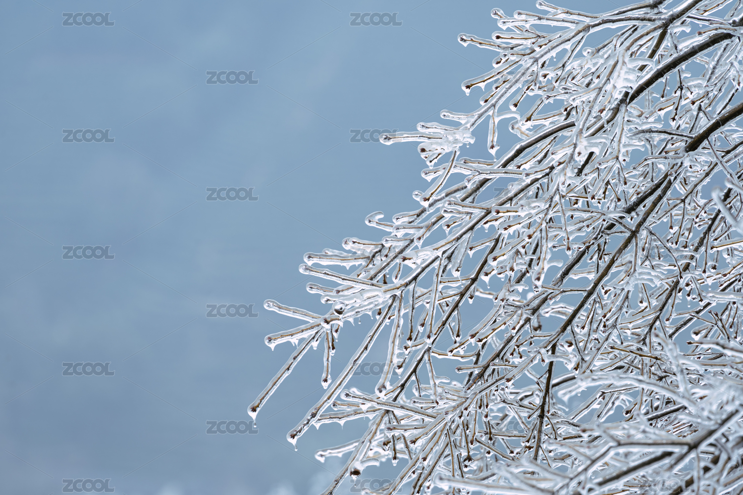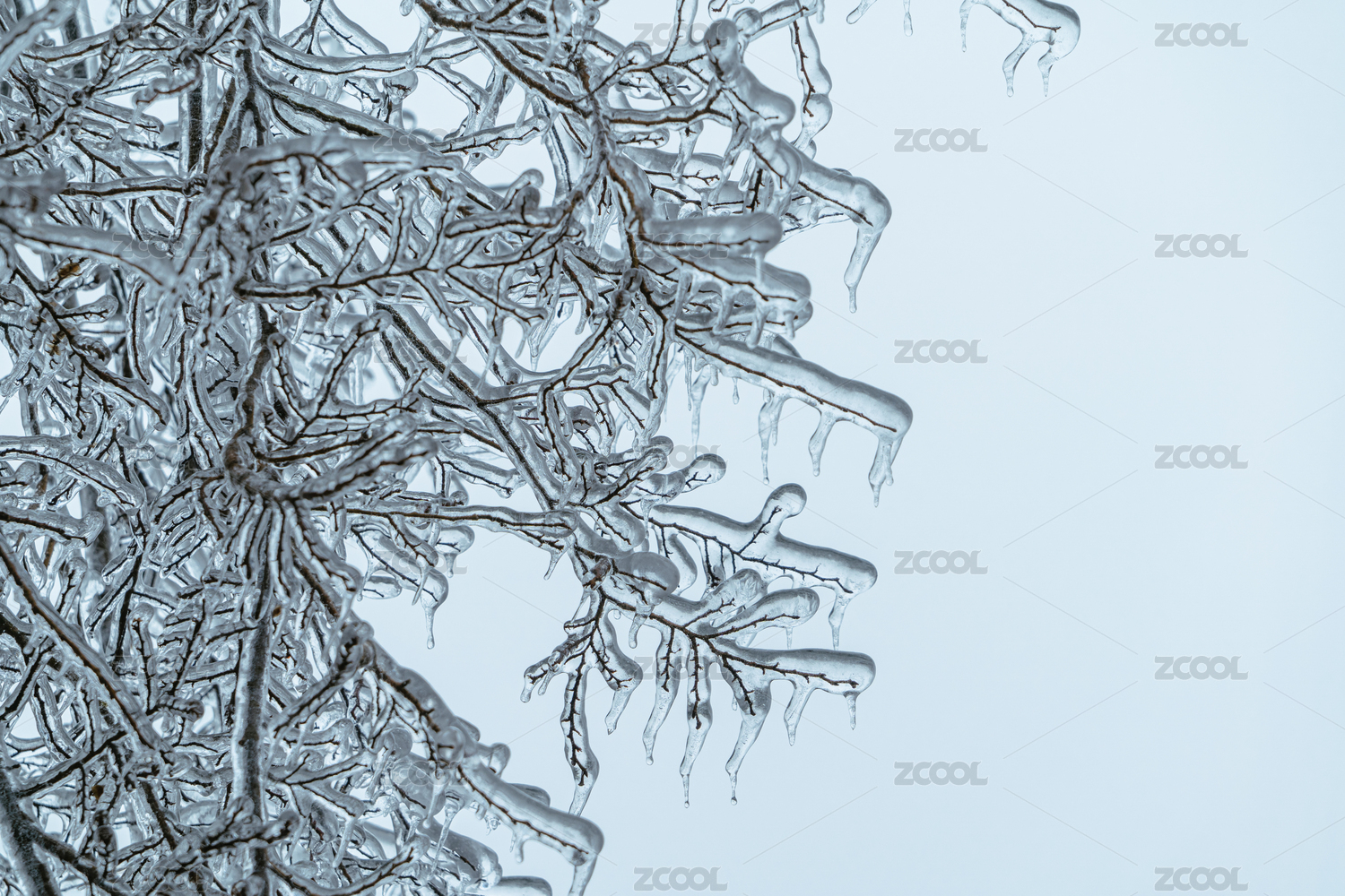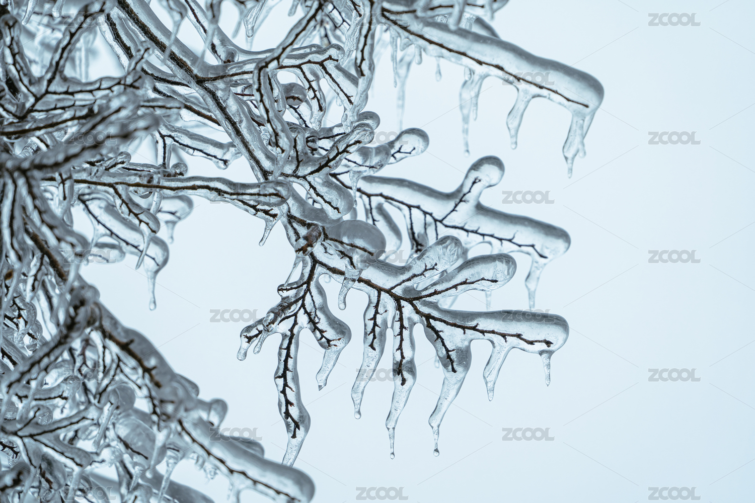 初春寒潮下被冰包裹的植物