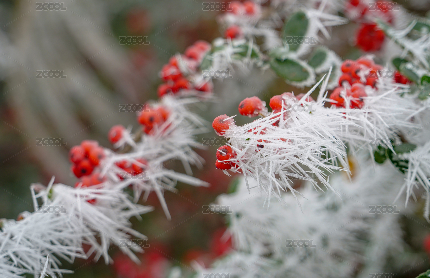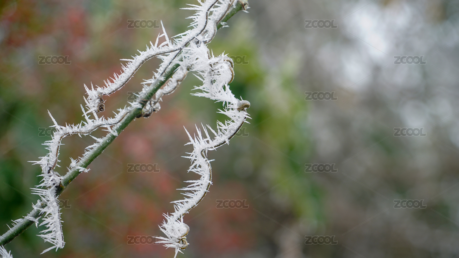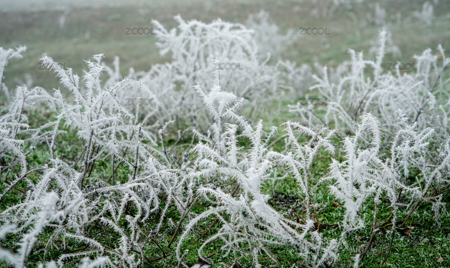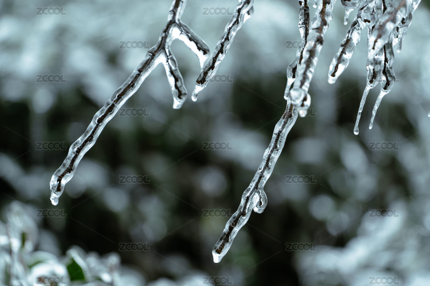 初春寒潮下被冰包裹的植物