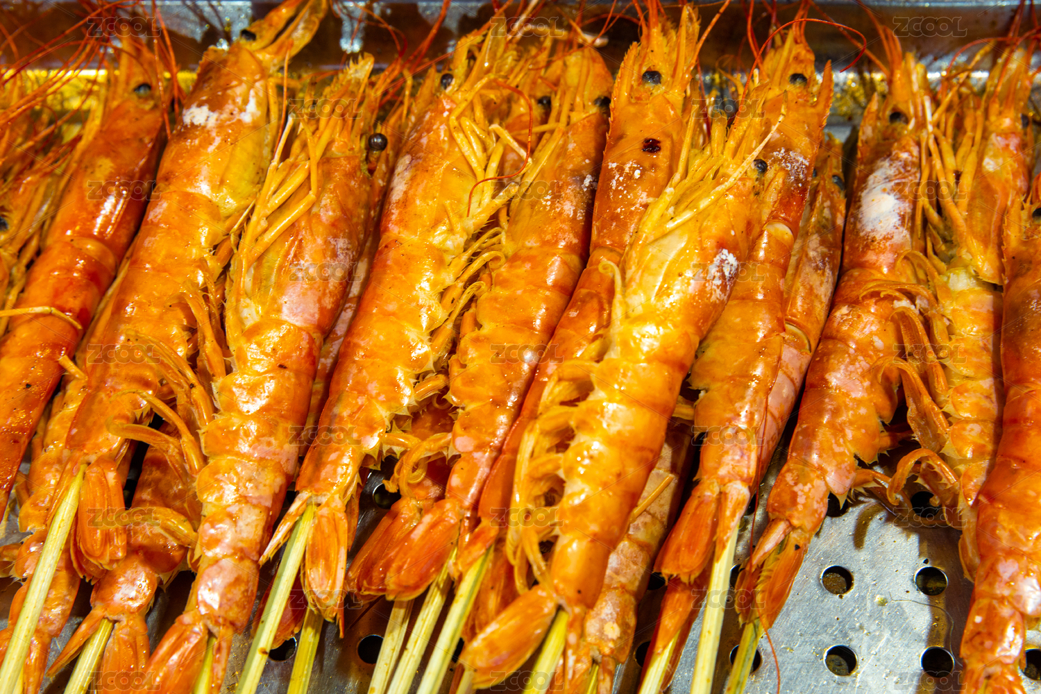 山東省青島市劈柴院美食街的烤蝦