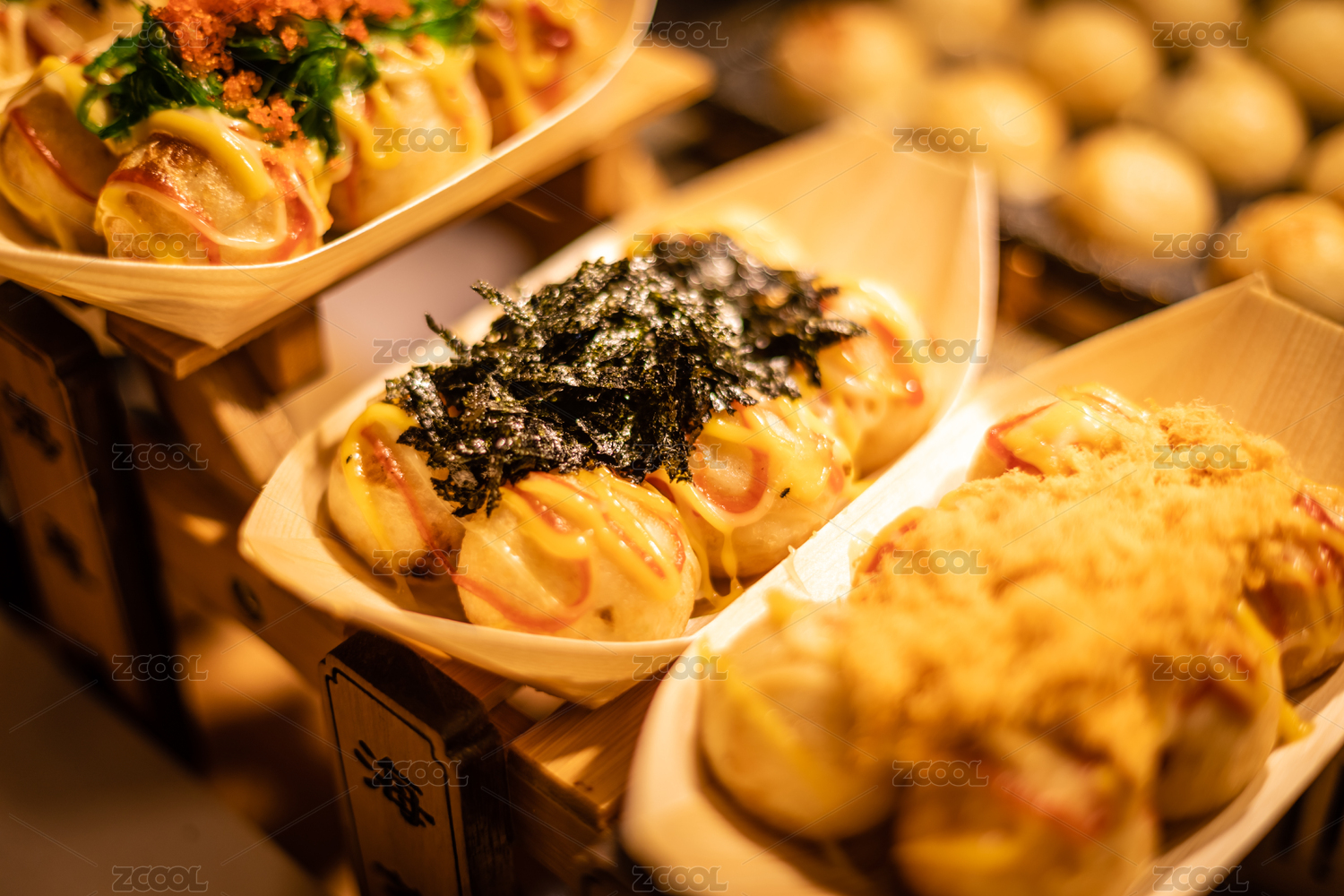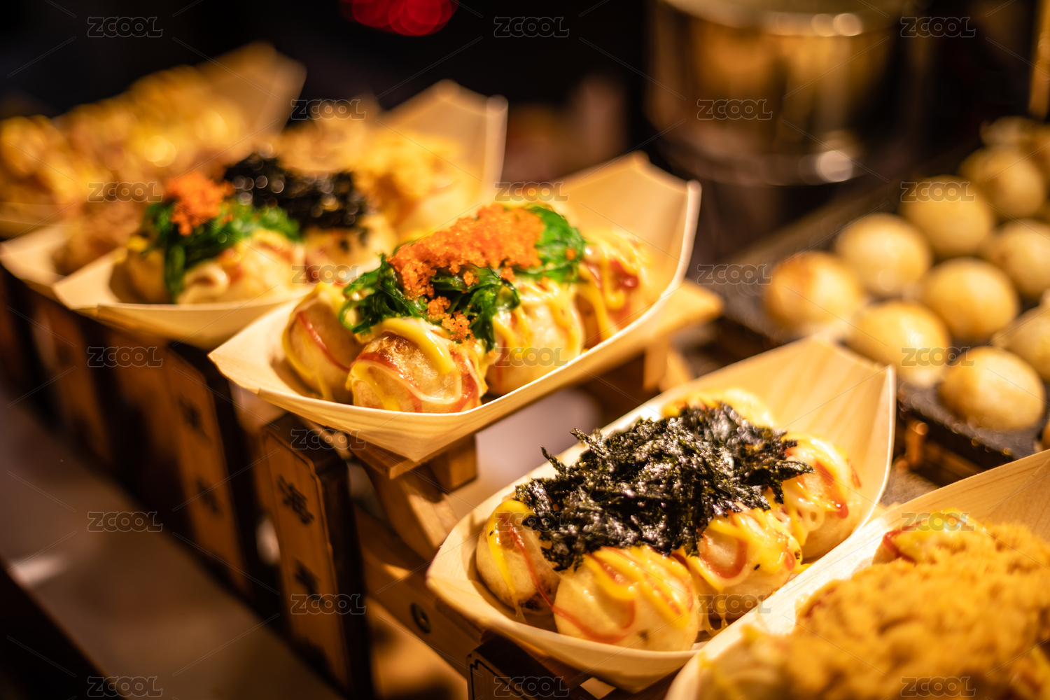 美食街的章魚小丸子小吃攤
