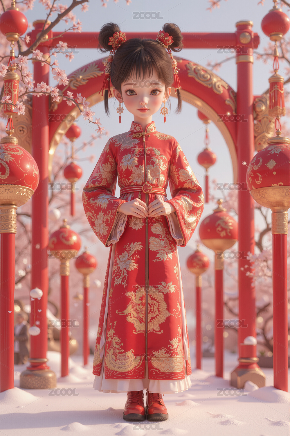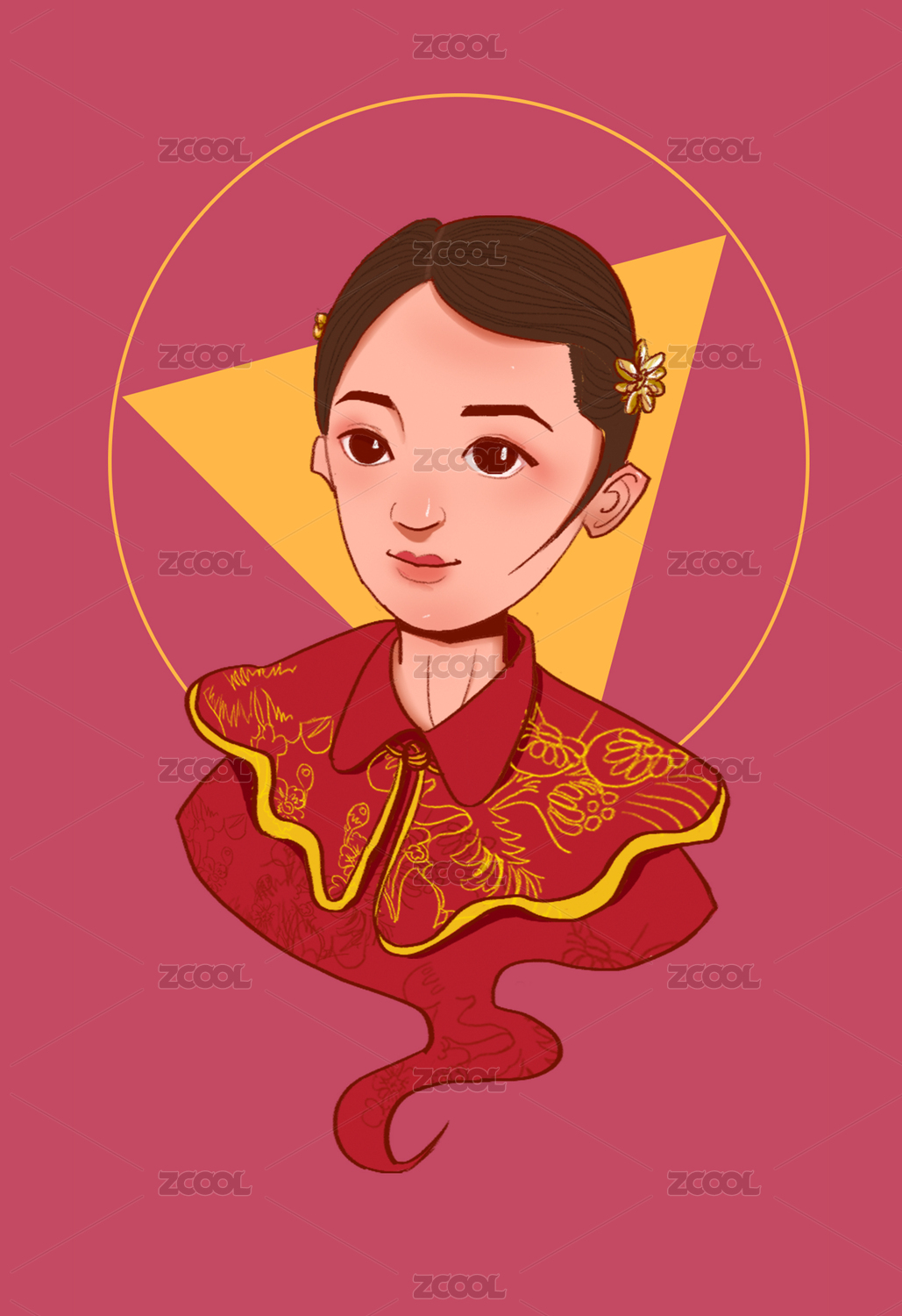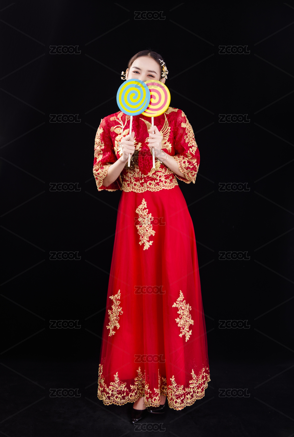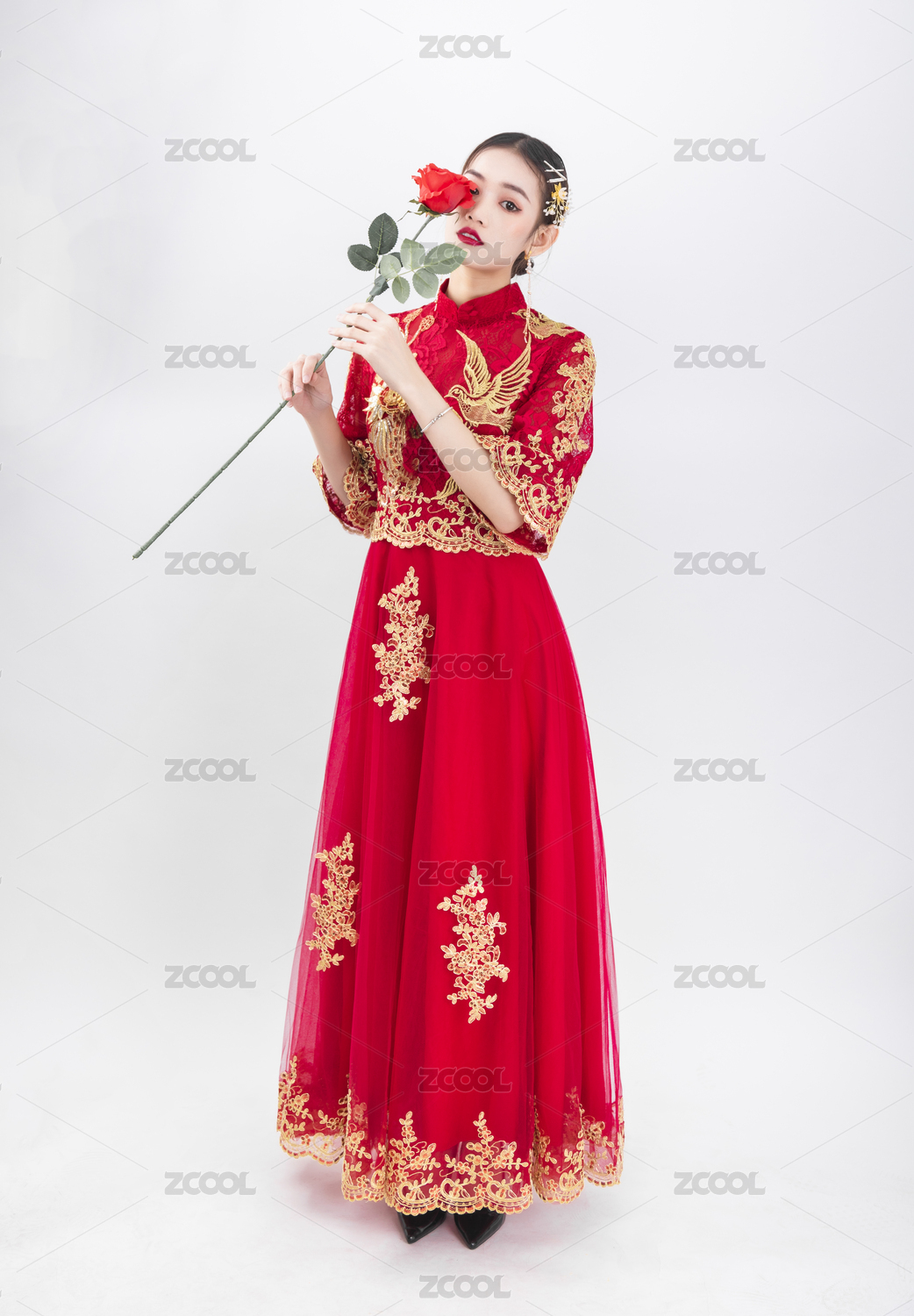 身穿中國(guó)秀禾服手撐油紙傘的亞洲女性模特