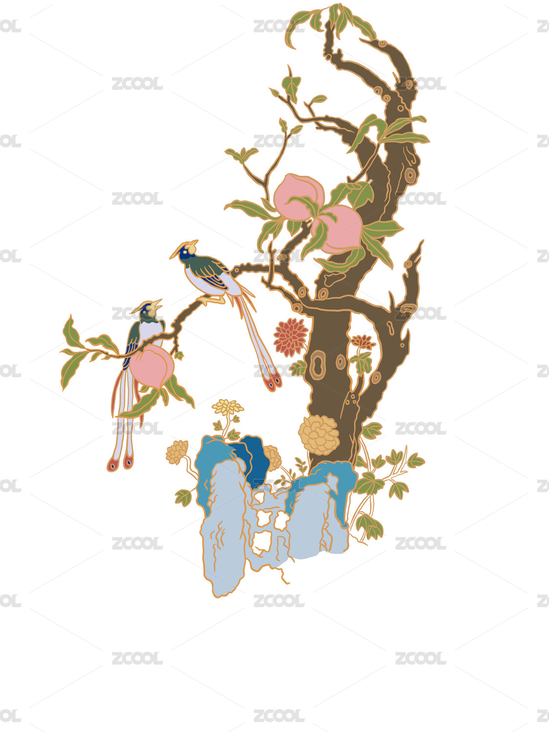 傳統(tǒng)中國畫花鳥畫桃樹