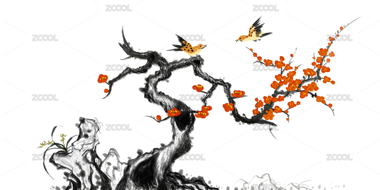 石頭梅花花鳥國畫裝飾畫