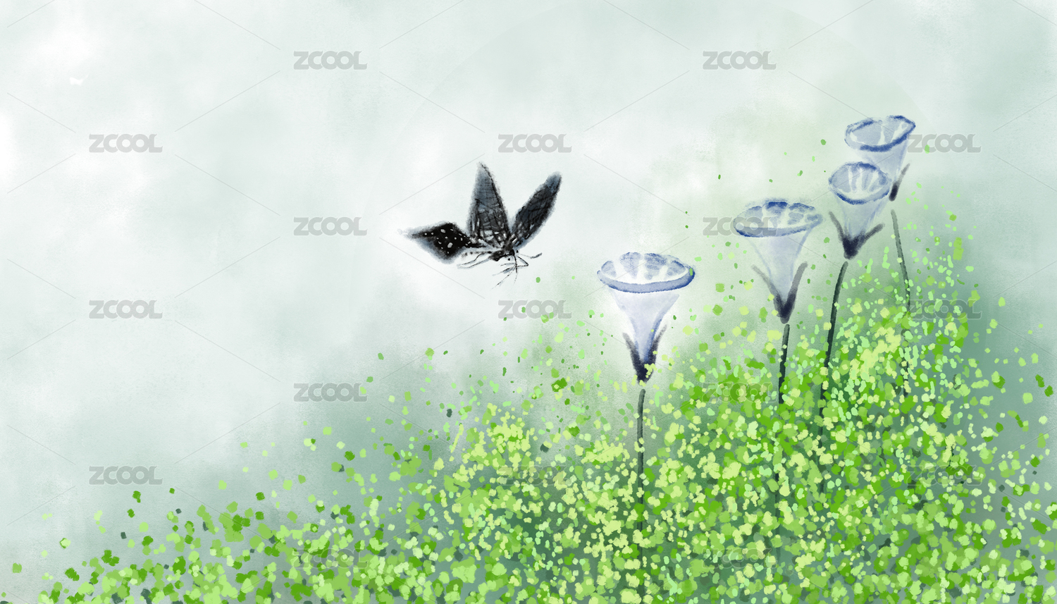 手繪插畫水墨畫花鳥畫牽?;ㄖ袊?/div>