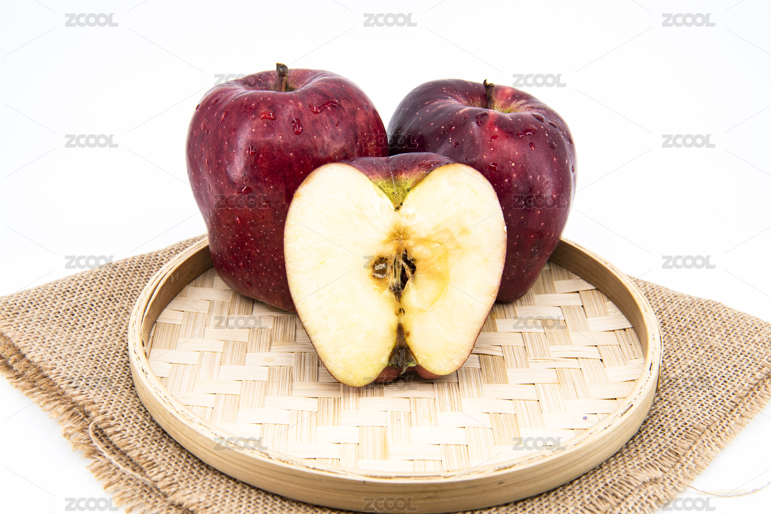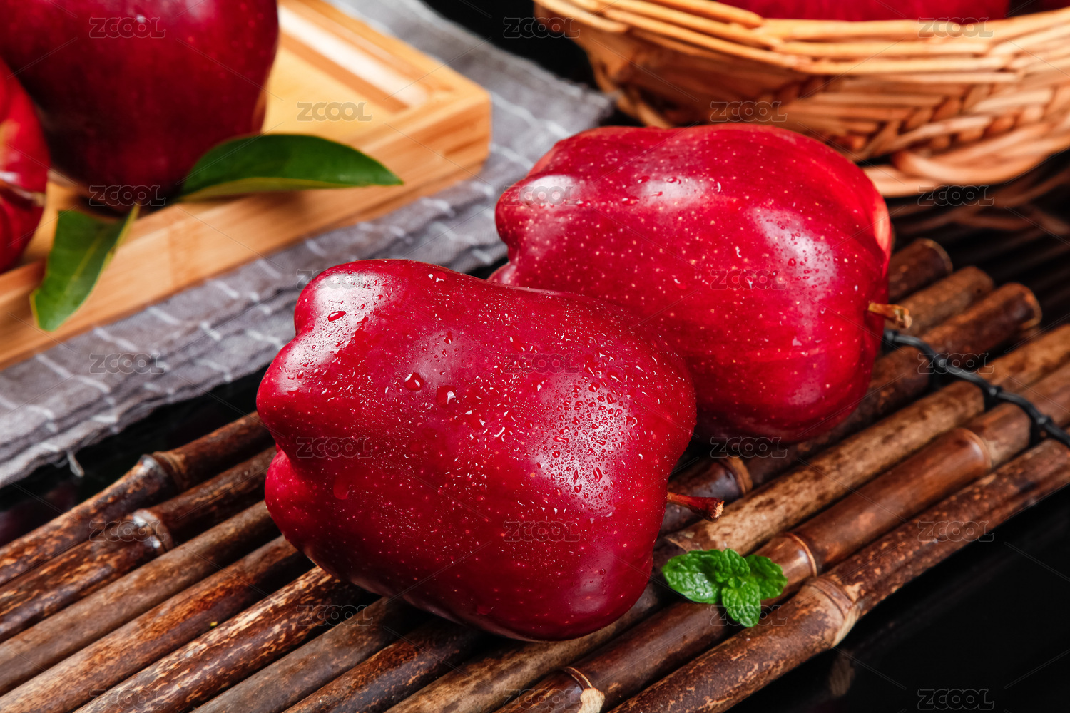 竹底上放著兩個(gè)天水花牛蘋(píng)果