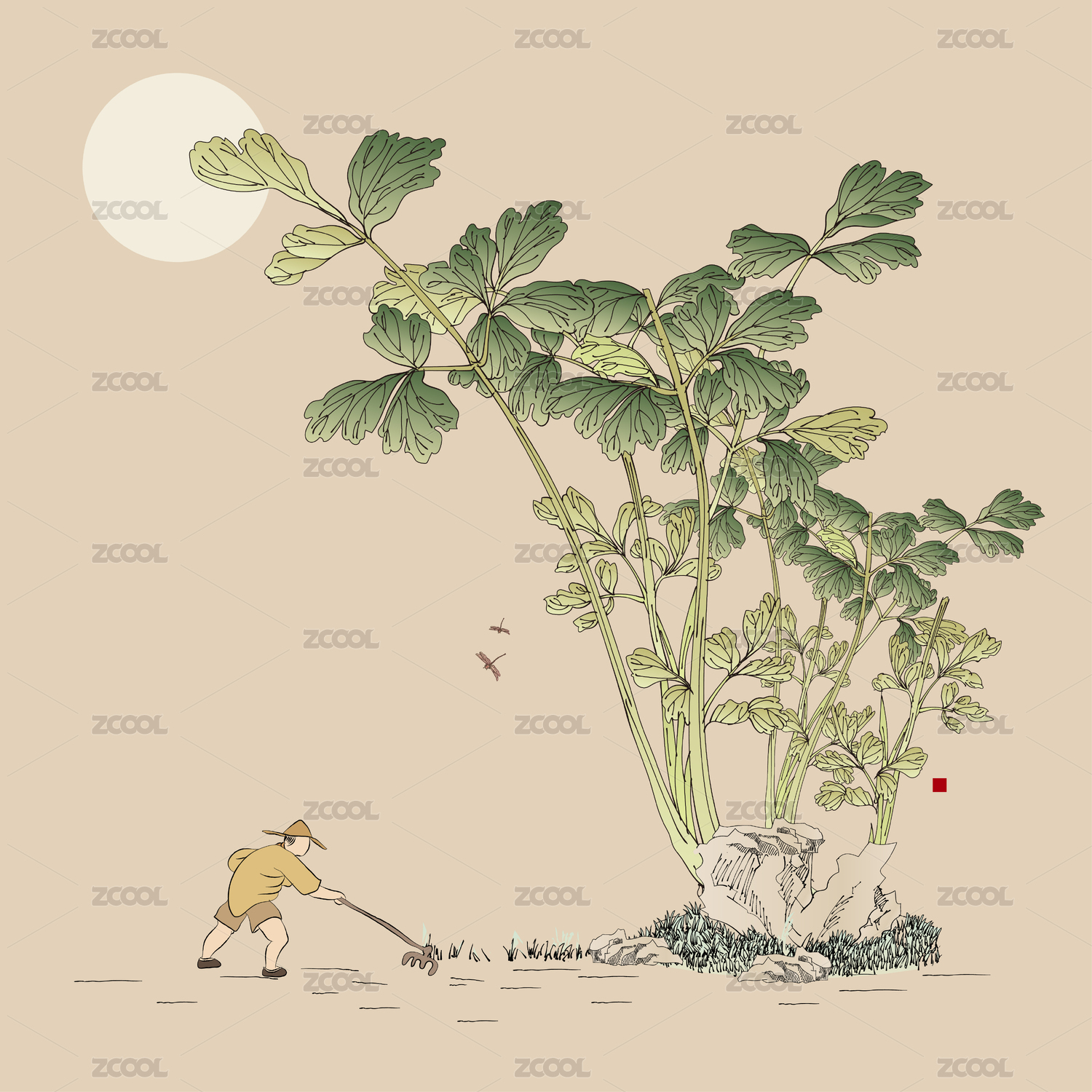 農民耕地種芹菜中國風矢量插畫