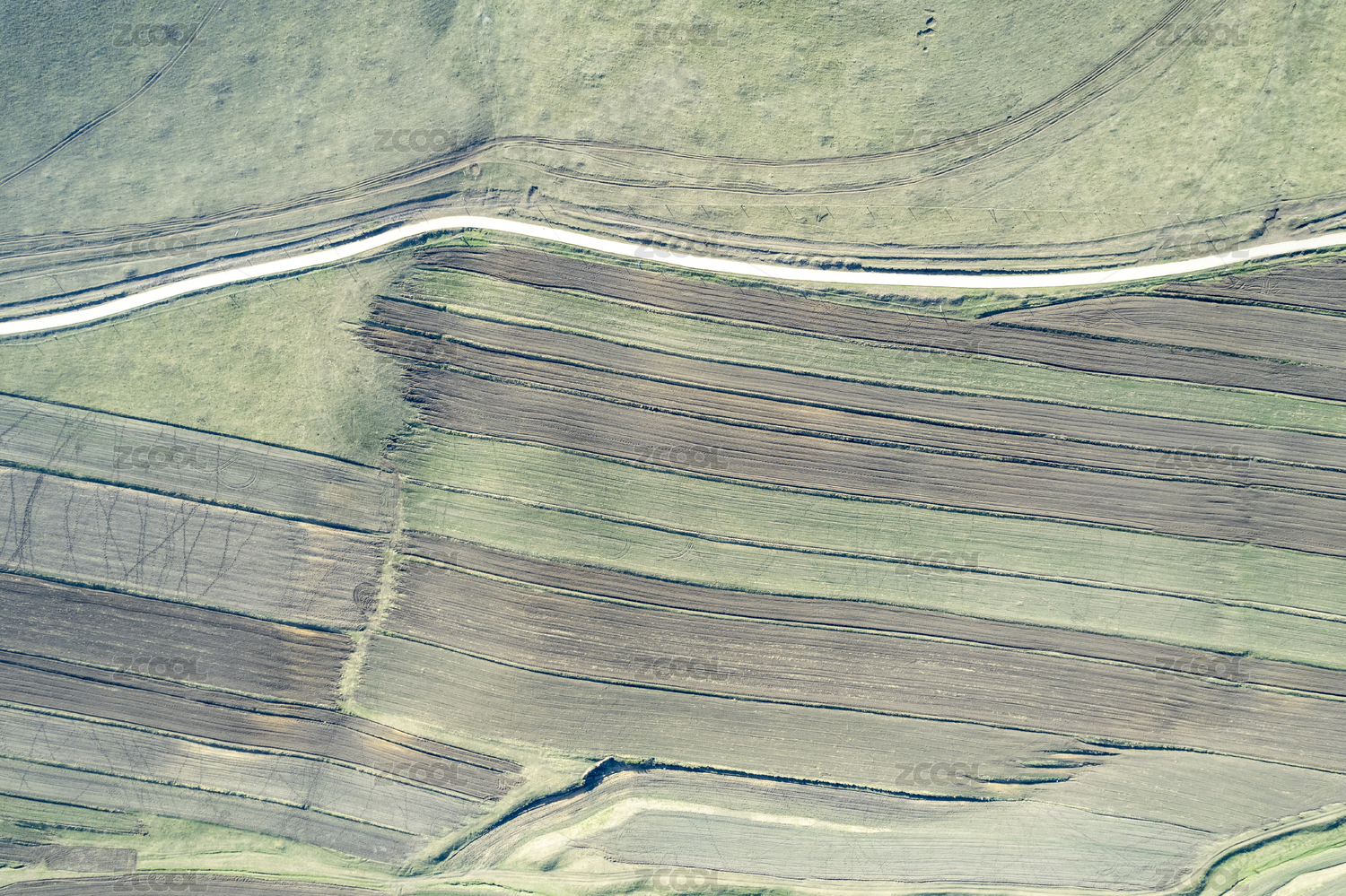 夏天航拍垂直視角草原耕地風景