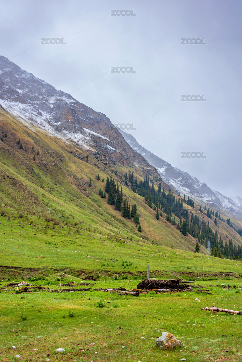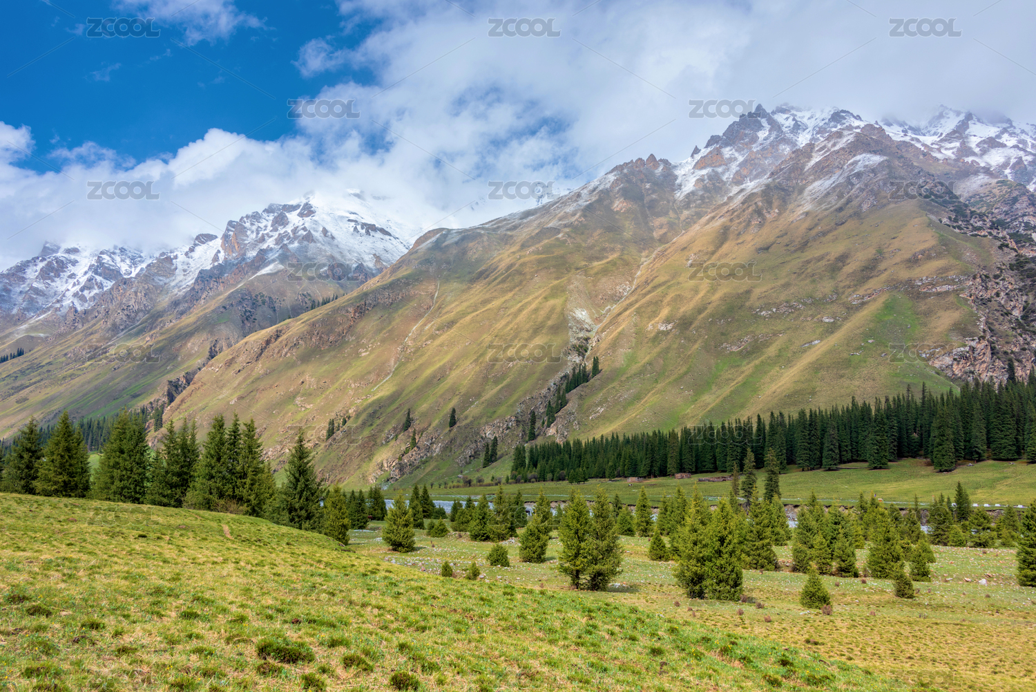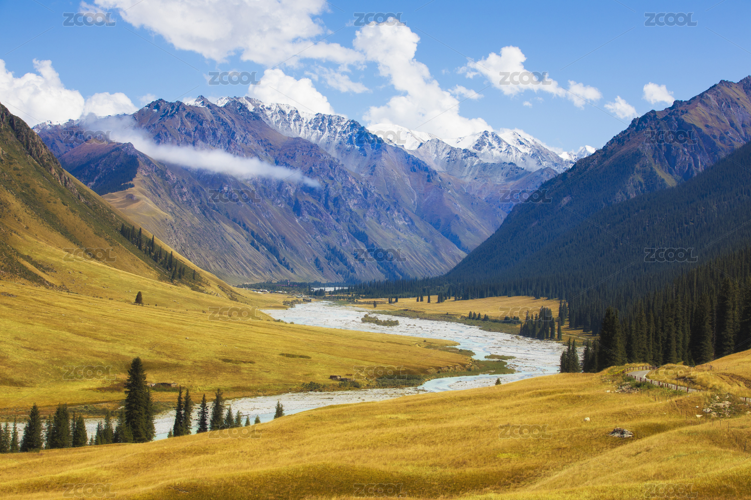 中國(guó)新疆伊犁昭蘇夏塔古道草原雪山自然風(fēng)光