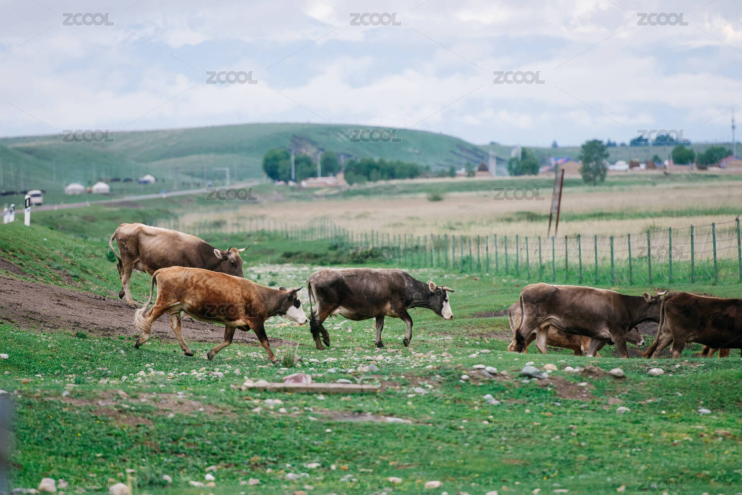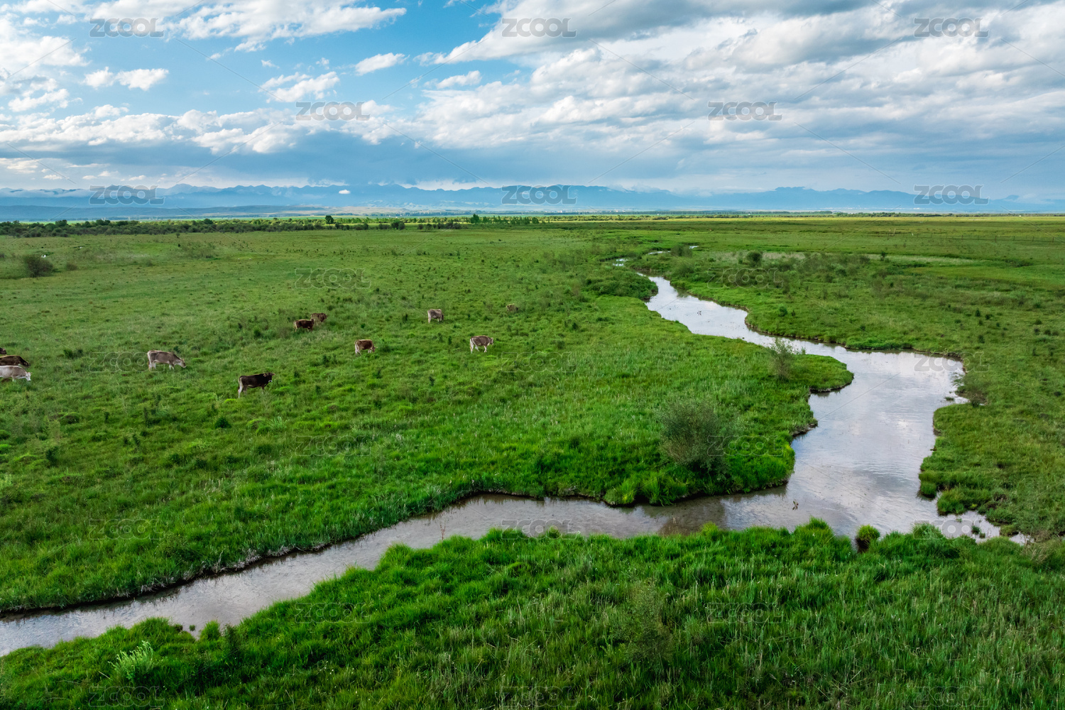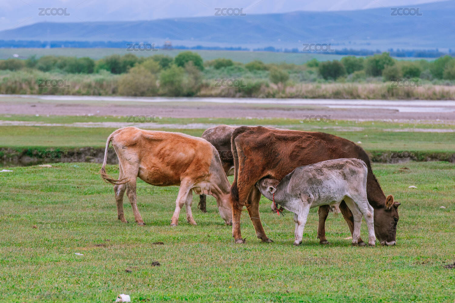 中國(guó)新疆伊犁昭蘇濕地公園的牛群