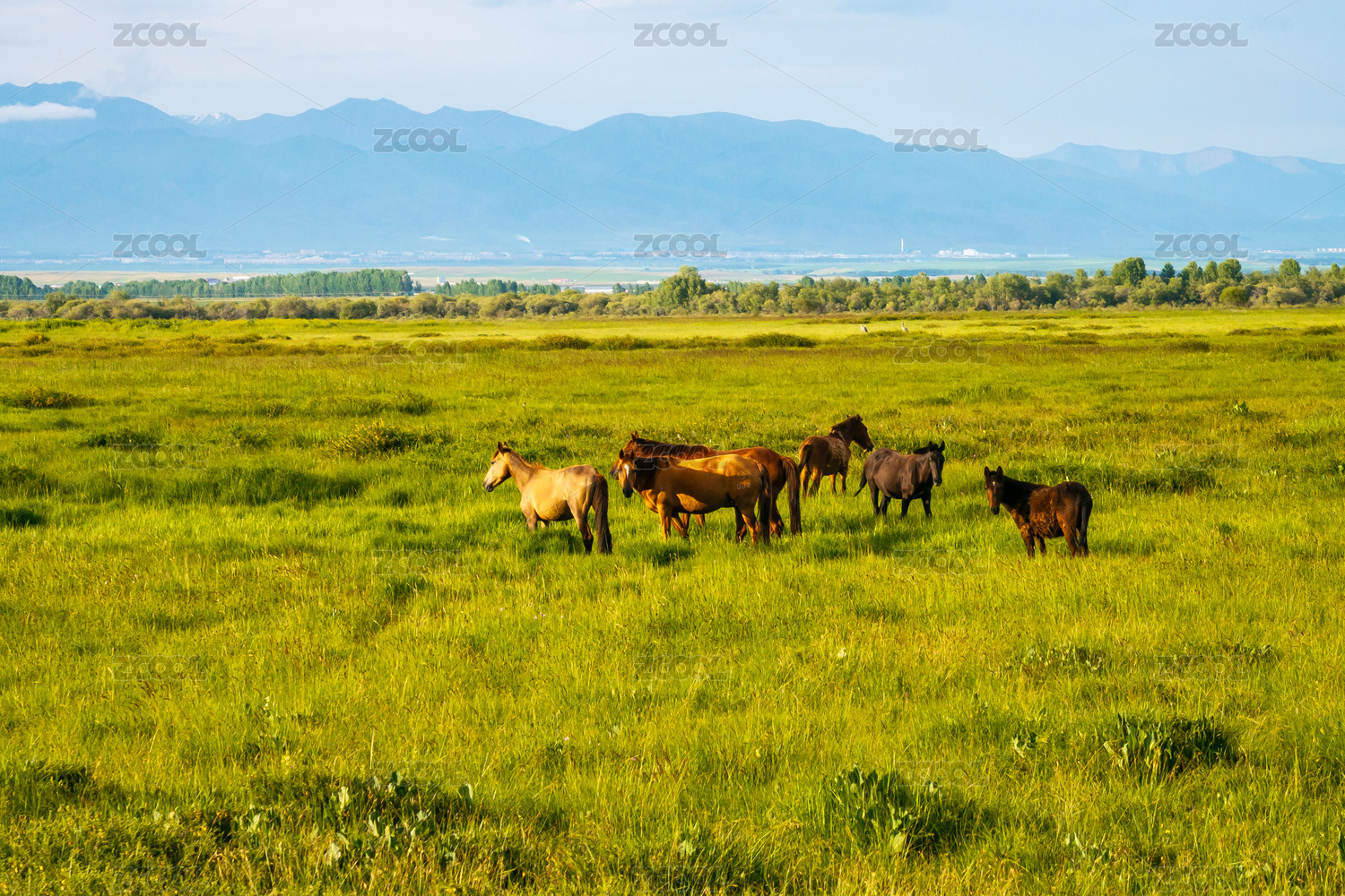 中國(guó)新疆伊犁昭蘇濕地公園草原馬自然風(fēng)光