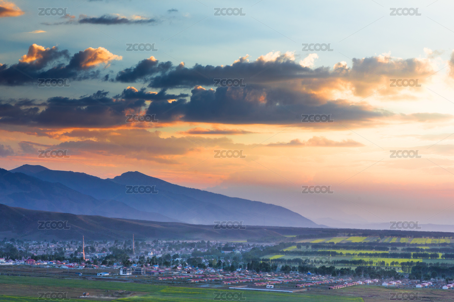 中國(guó)新疆昭蘇天山鄉(xiāng)日落