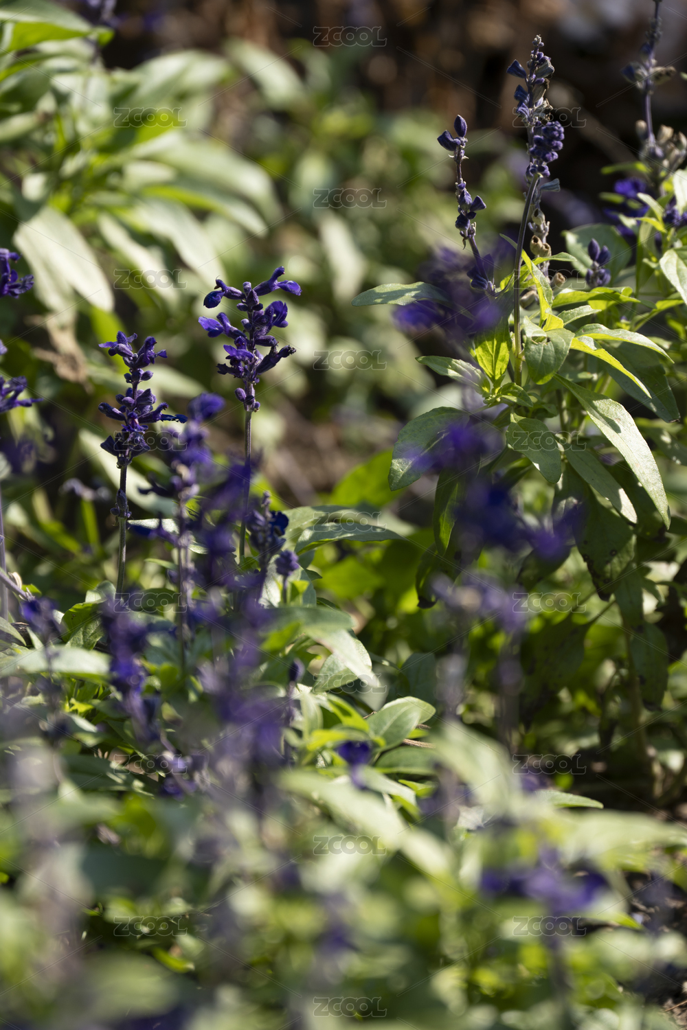 陽光下庭院植物林蔭鼠尾草特寫