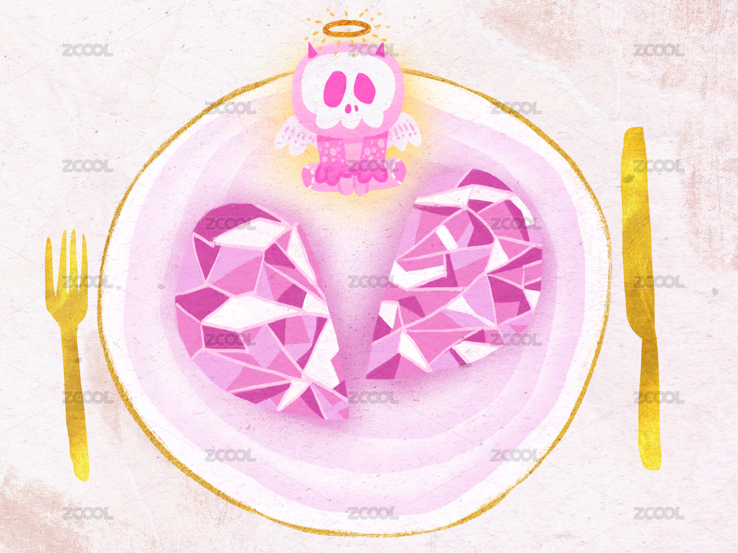 餐盤上破裂的水晶心小惡魔